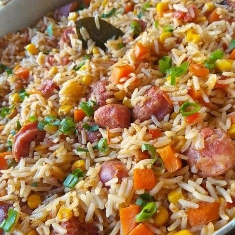 Feijao de corda,arroz calabresa e carne seca e Bacon,coentro e cebolinha.