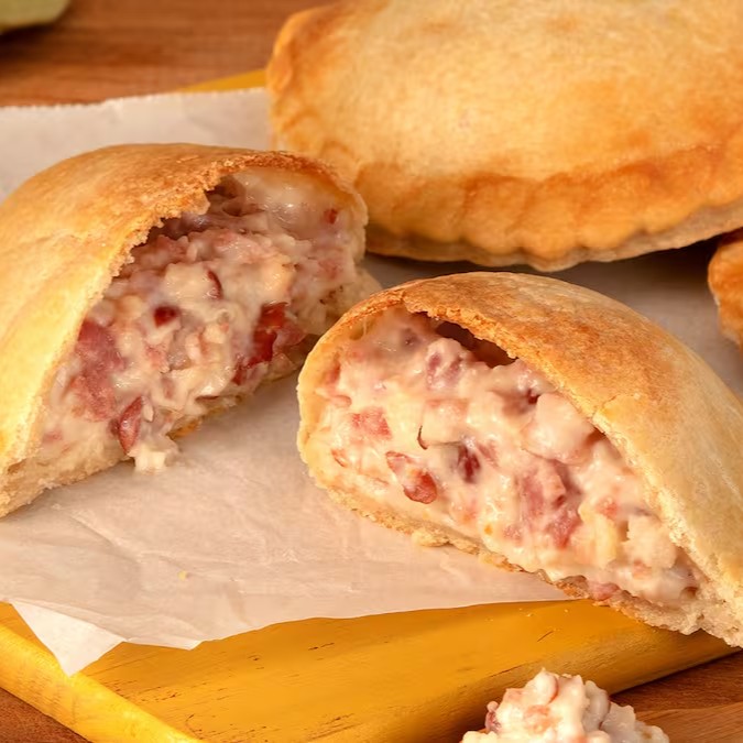 Prove nossa empanada com recheio de calabresa e requeijão. Direto do nosso forno até sua porta.