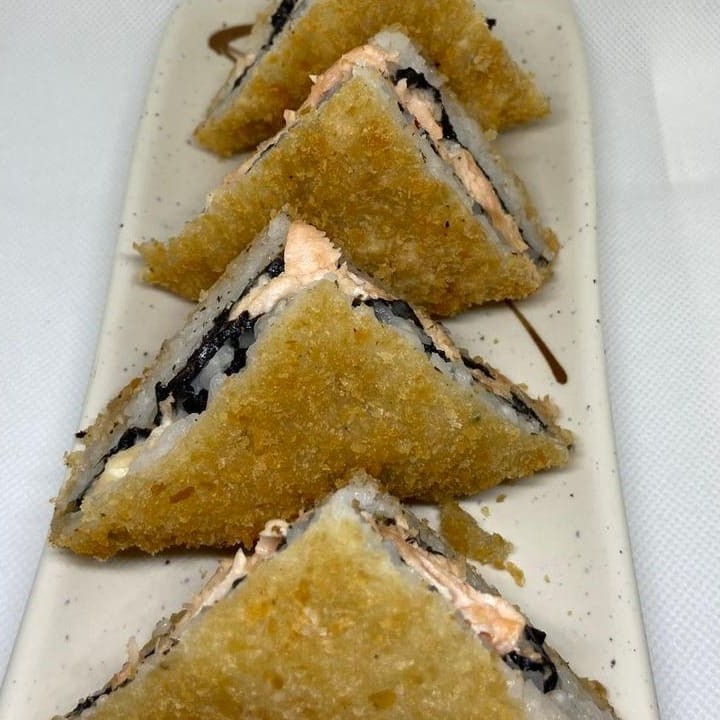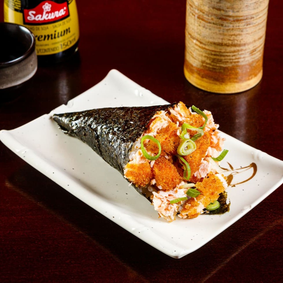 Temaki empanado com farinha crocante.