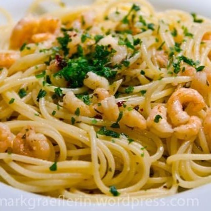 Macarrão tipo espagueti, no alho, azeite e salsinha.
