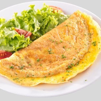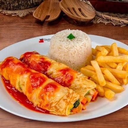 Saboroso omelete + acompanhado arroz + feijão+ fritas