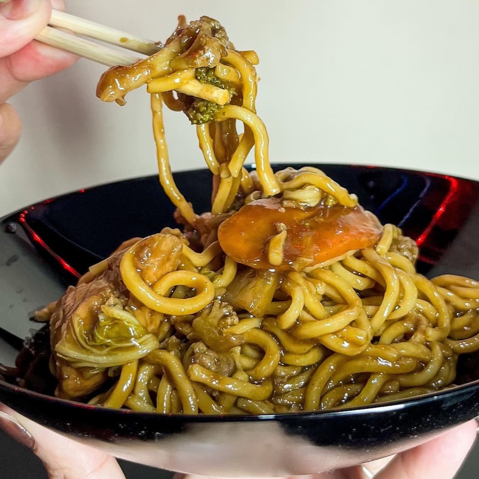 Delicioso Yakisoba com carne frango e legumes e macarrão ao molho do mestre