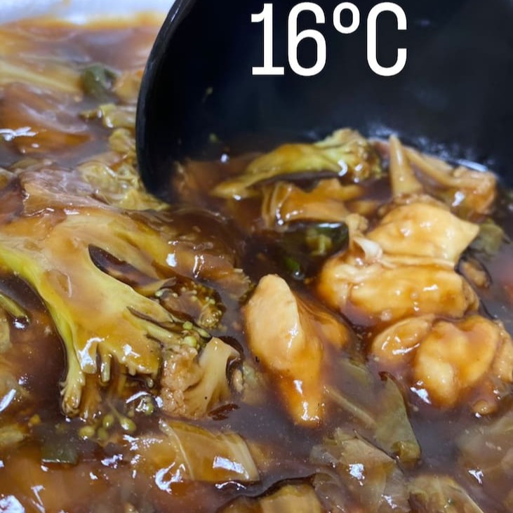 Filé de frango em cubos com brócolis cenoura ao molho do mestre