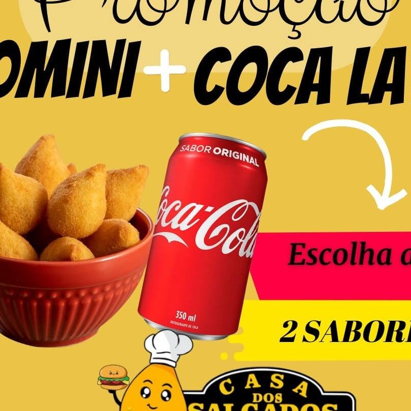 Nessa Promoção Vc Pode Escolher 2 Sabores De Salgados + coca lata 350ml bem gelada.