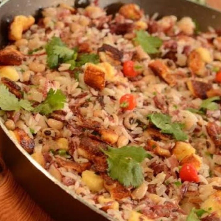 Feijão fradinho, arroz branco, bacon, calabresa, tomate e temperos tudo bem caseiro. Obs: Não é possível fazer alterações no prato.