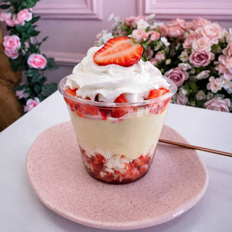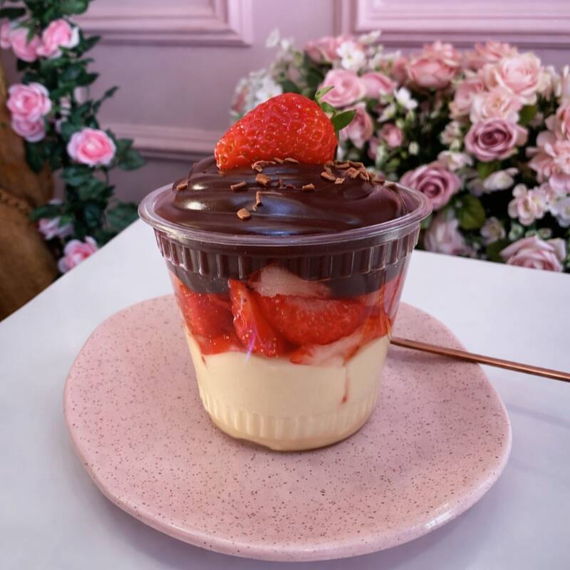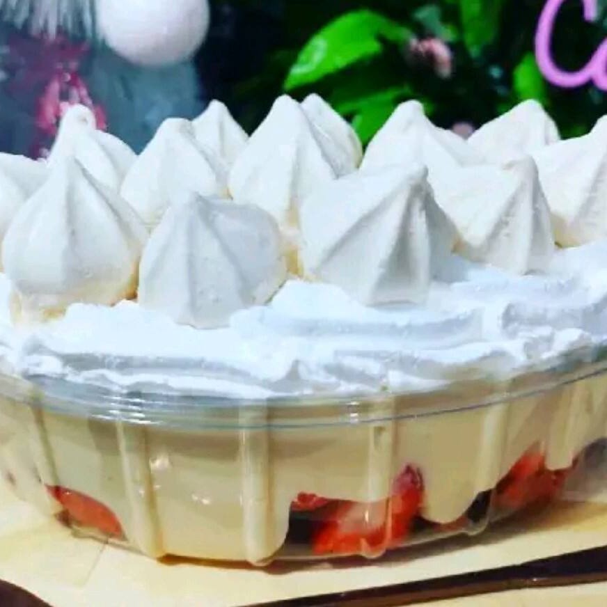 Sobremesa com creme de Ninho, suspiro, morangos picados e chantilly. Atenção: atente-se ao tamanho do produto, pois o mesmo não é vendido no peso e sim por tamanho. (Temos dois tamanhos embalagen de 750ml e 1.5 Litros).