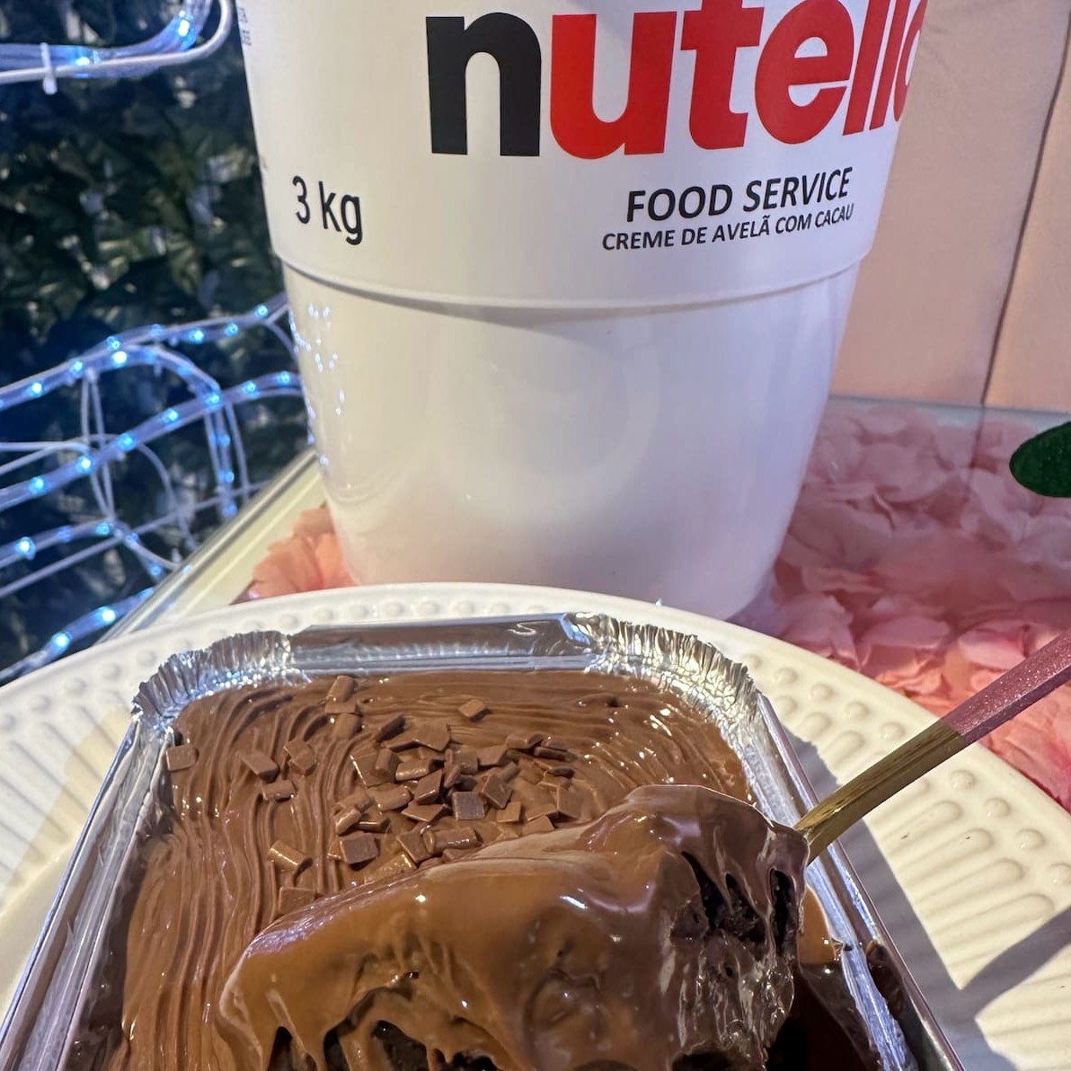Brownie na marmitinha coberto com Nutella pesando 200 gramas de muita gostosura!! 120 gramas de brownie + 80 gramas de Nutella em cada marmitinha