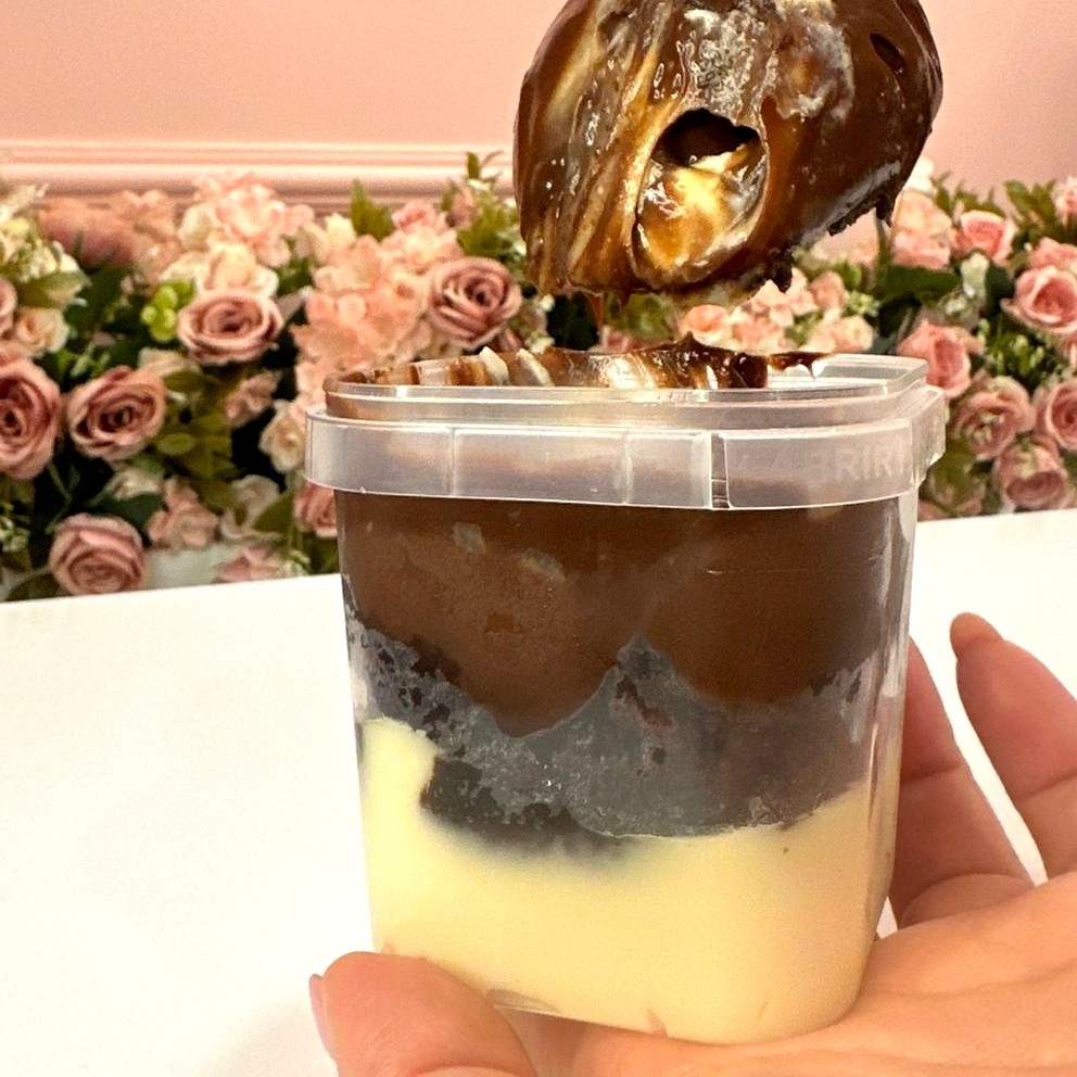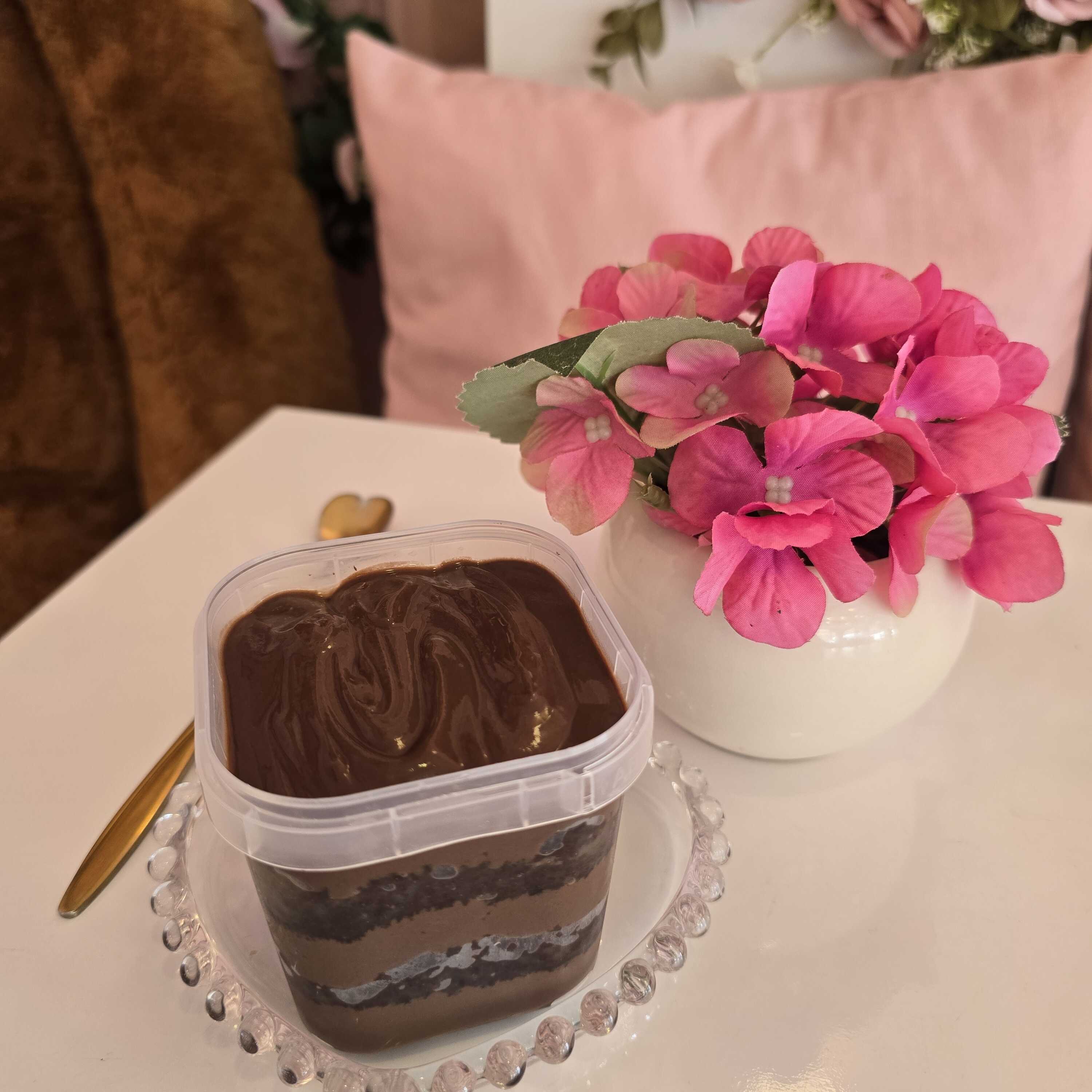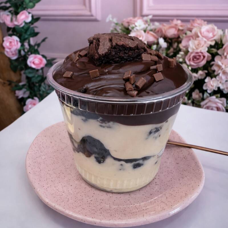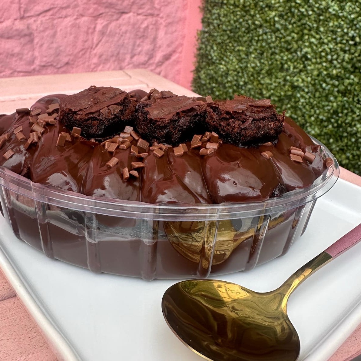 Sobremesa com brigadeiro cremoso 50% cacau, pedacinhos de brownie . Atenção: atente-se ao tamanho do produto, pois o mesmo não é vendido no peso e sim por tamanho. (Temos dois tamanhos embalagem de 750ml e 1.5 Litros).