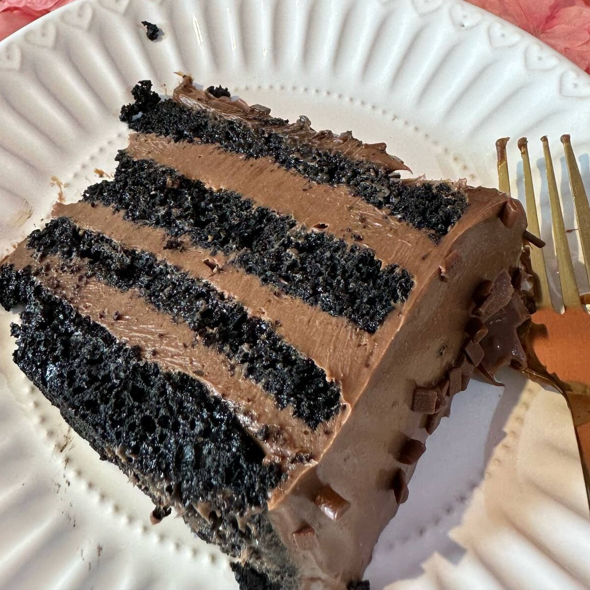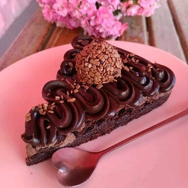 Massa super molhadinha feita com chocolate 50% cacau, coberto com brigadeiro belga cremoso e raspas de chocolate e nobre.