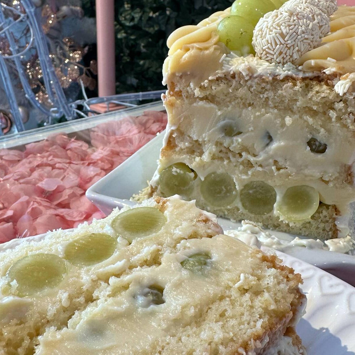 Bolo de baunilha recheado com brigadeiro branco e uvas frescas , uma combinação perfeita. (Peso aproximado 220g a 240g). *Atenção: o preço a cima é referente a uma fatia do produto. **Atenção: produto vendido por peso (gramas) e não por tamanho! ***Atenção: Utilizamos uma mesma embalagem para varios tipos de produtos, logo pode ser que o item seja menor que a embalagem.