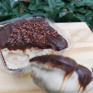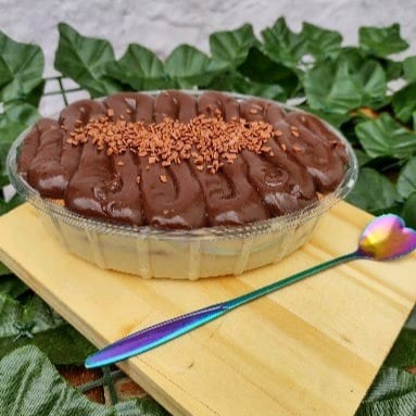 Fatia de torta banoffe, massa crocante recheada com doce de leite , banana fresca e chantilly e canela. Peso aproximado 180 a 200g. *Atenção: o preço a cima é referente a uma fatia do produto. **Atenção: produto vendido por peso (gramas) e não por tamanho! ***Atenção: Utilizamos uma mesma embalagem para varios tipos de produtos, logo pode ser que o item seja menor que a embalagem.
