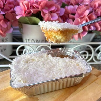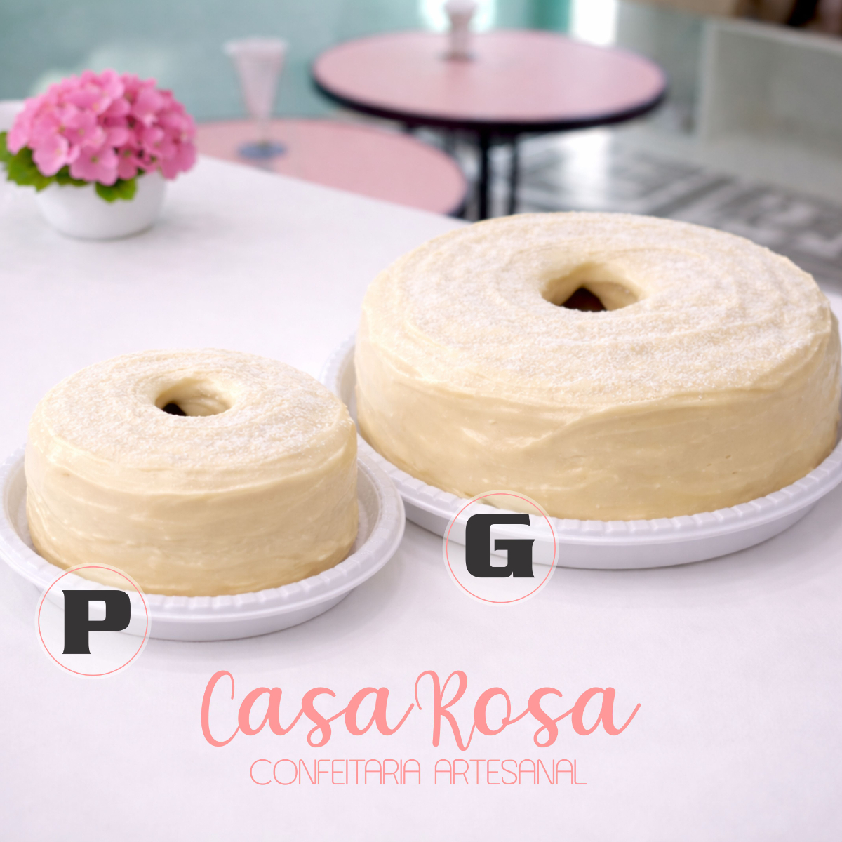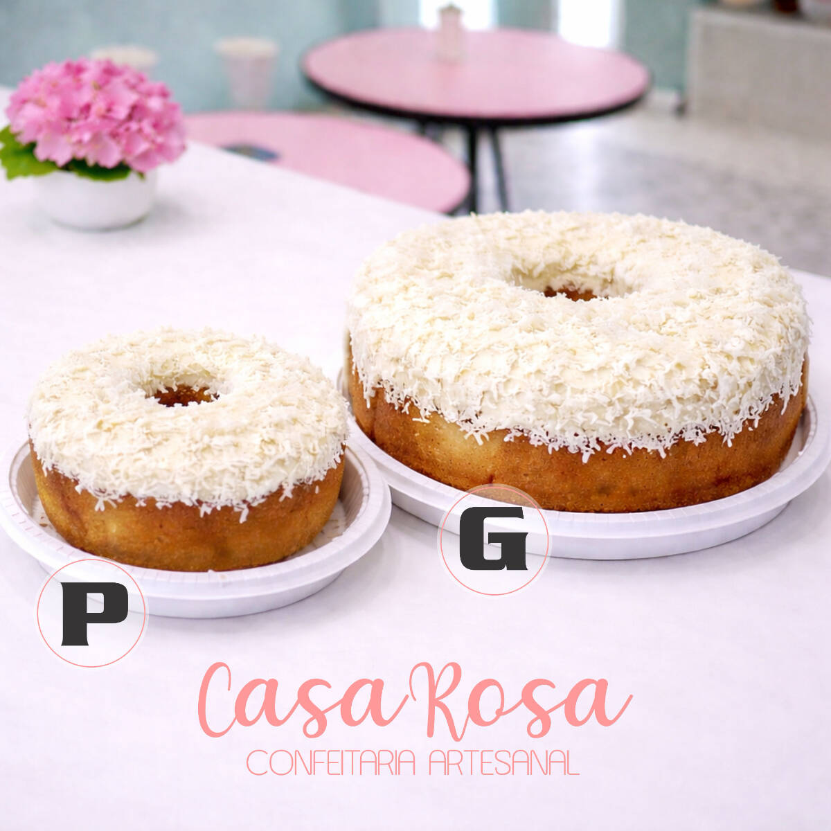 Nossa massa fofinha de baunilha coberta com coco molhadinho e leite condesado. (Serve aproximadamente 10 pessoas) (Peso aproximado 1kg).