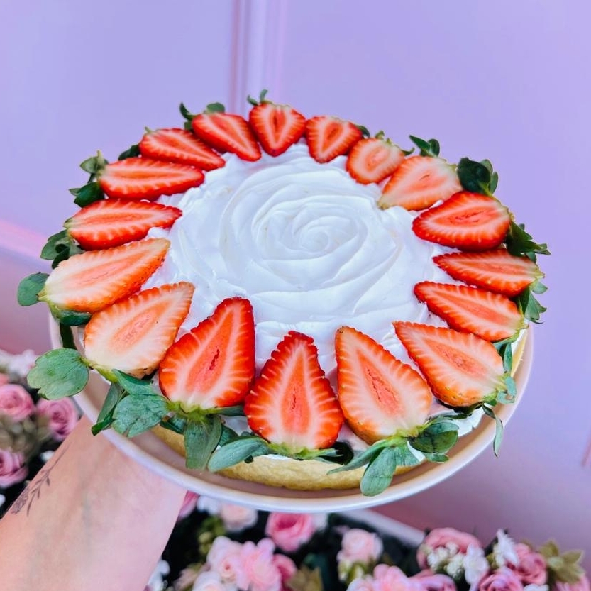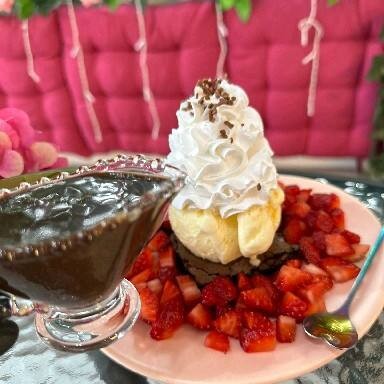 Creme de Ninho, suspiros, chantilly e morangos frescos.