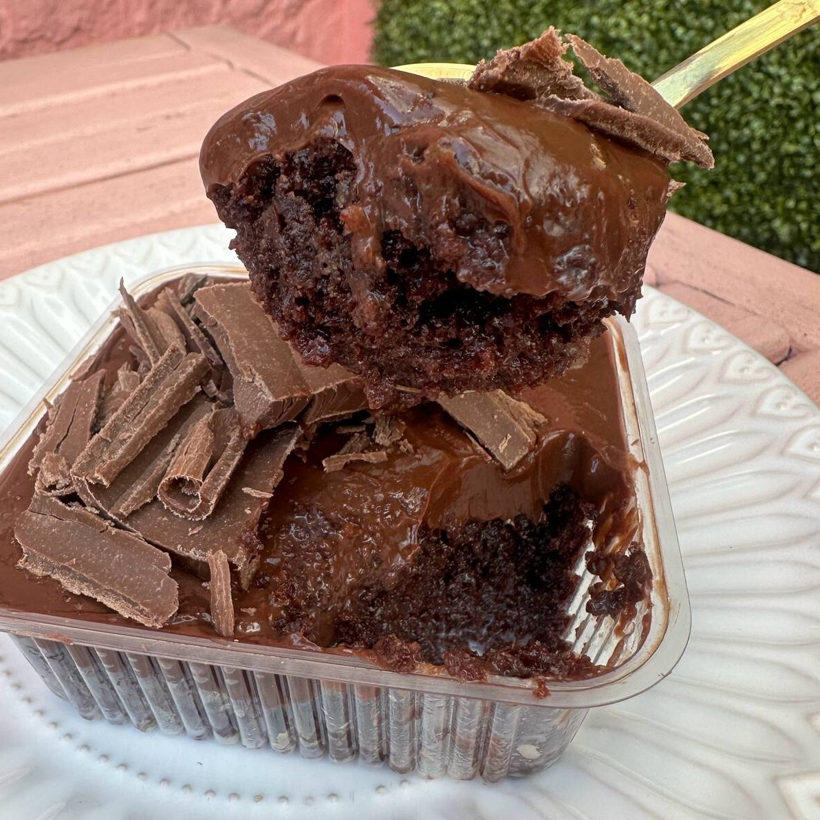 Nossa massa fofinha de chocolate 50% cacau, coberta com brigadeiro cremoso, leite condensado e coco ralado. (Serve aproximadamente 5 pessoas) (Peso aproximado 650gramas).