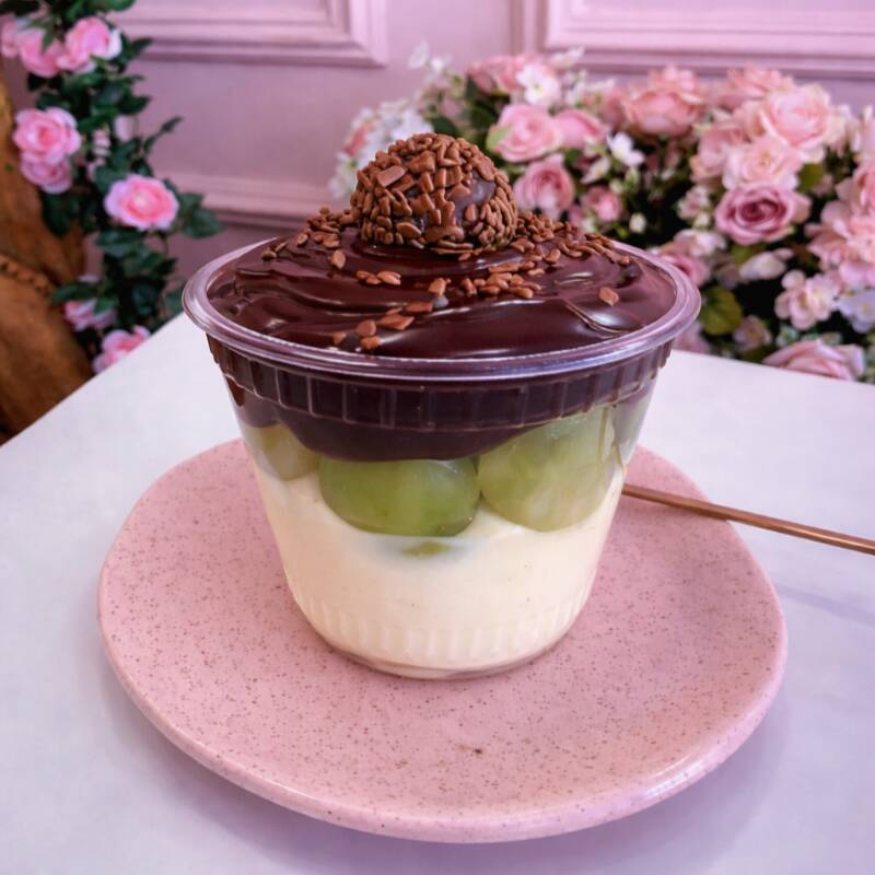 Creme de Ninho, brigadeiro cremoso e uvas frescas.