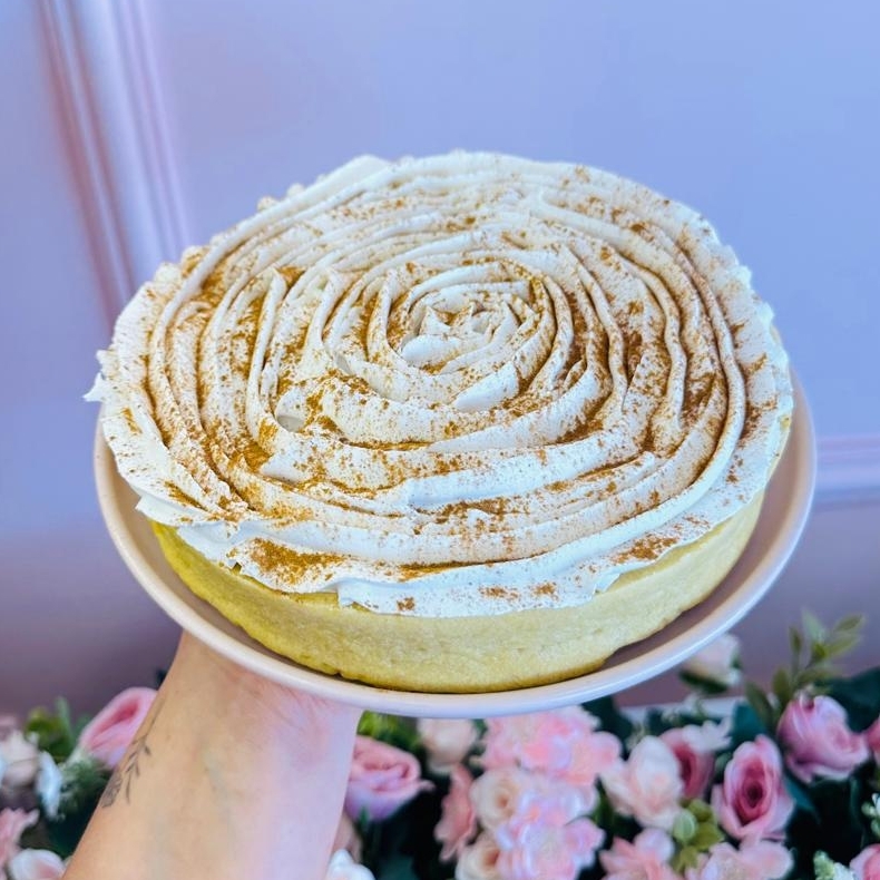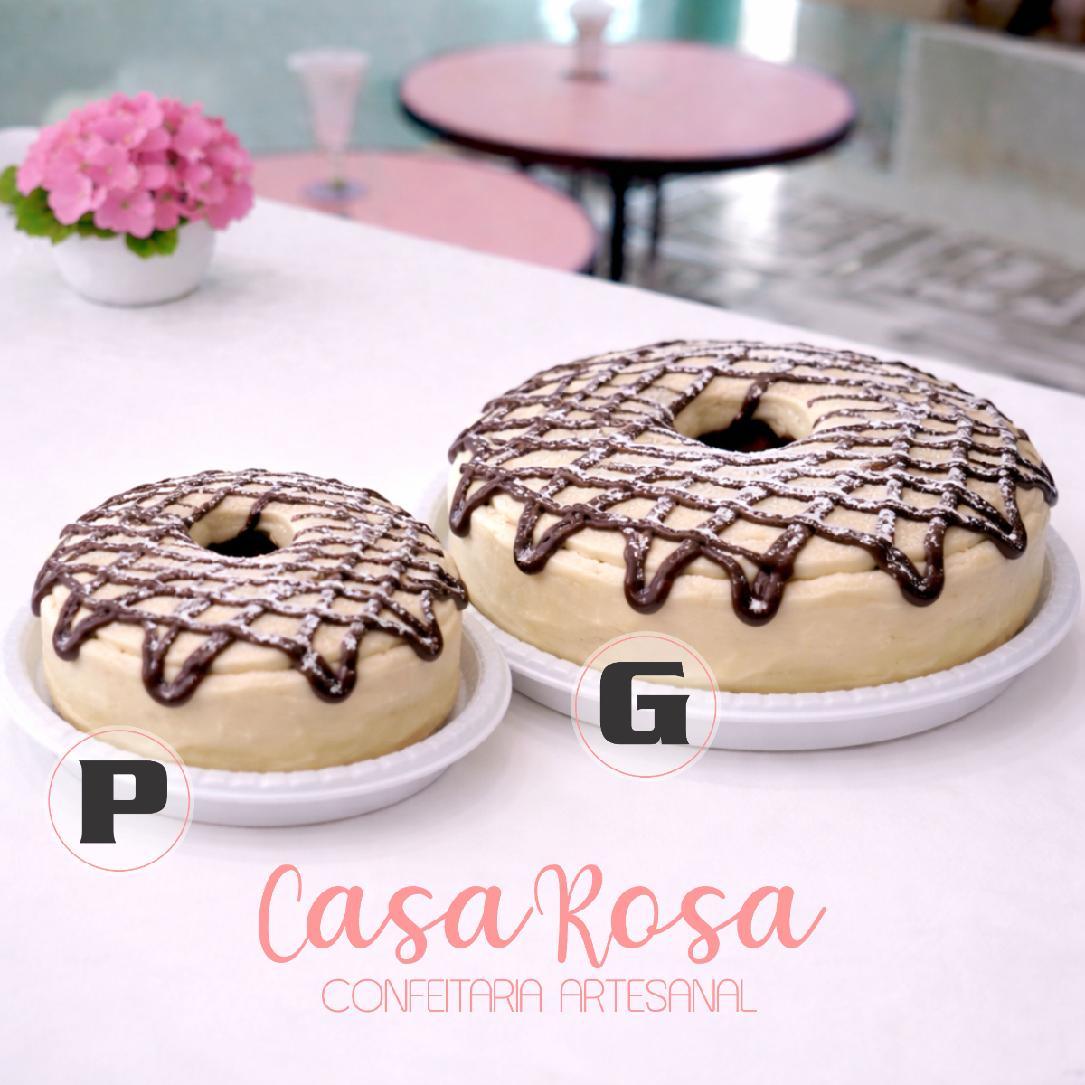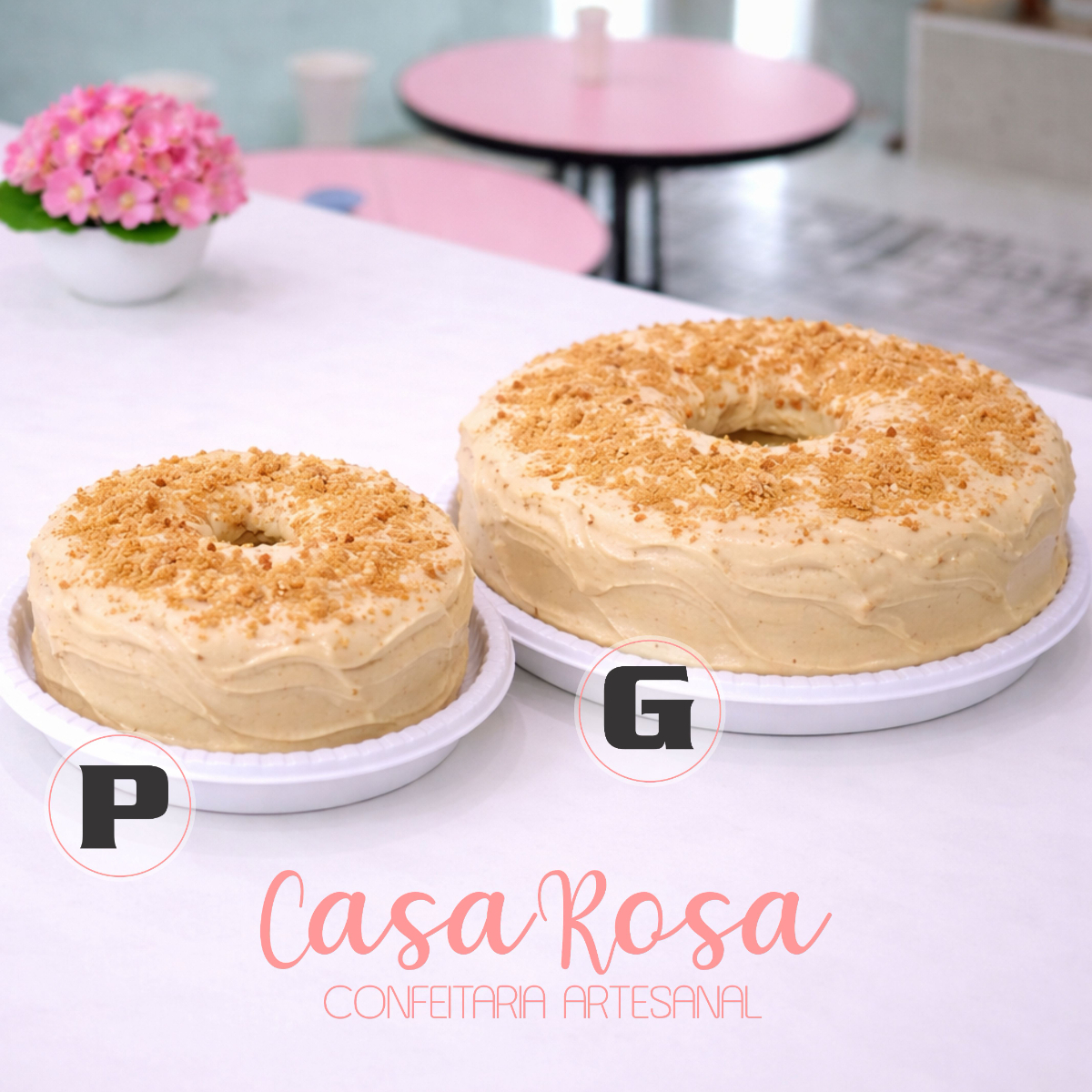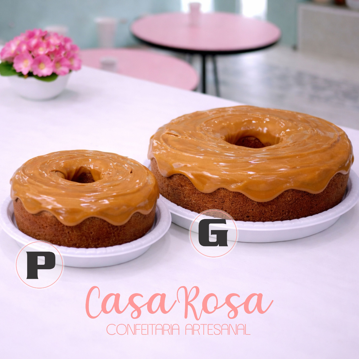 Nossa massa fofinha de baunilha saborizada com açúcar e canela, coberta com creme de doce de leite caseiro. (Serve aproximadamente 10 pessoas) (Peso aproximado 1kg).