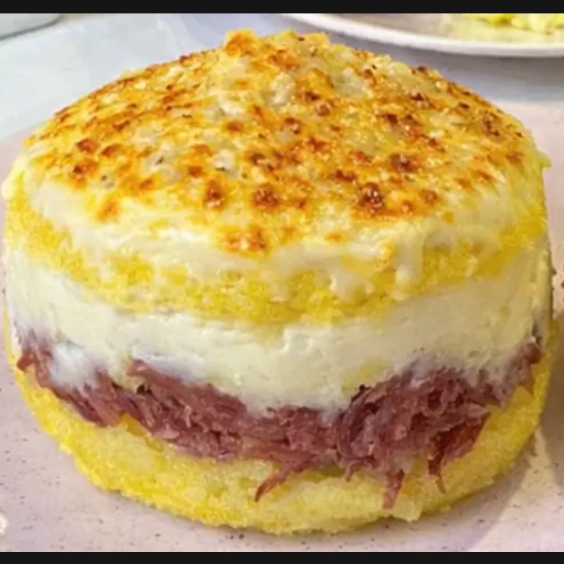 Um cuzcuz de carne seca com requeijão coberto com queijo gratinado, 1 guaraná antártica zero lata 350ML e 1 brigadeiro tradicional.