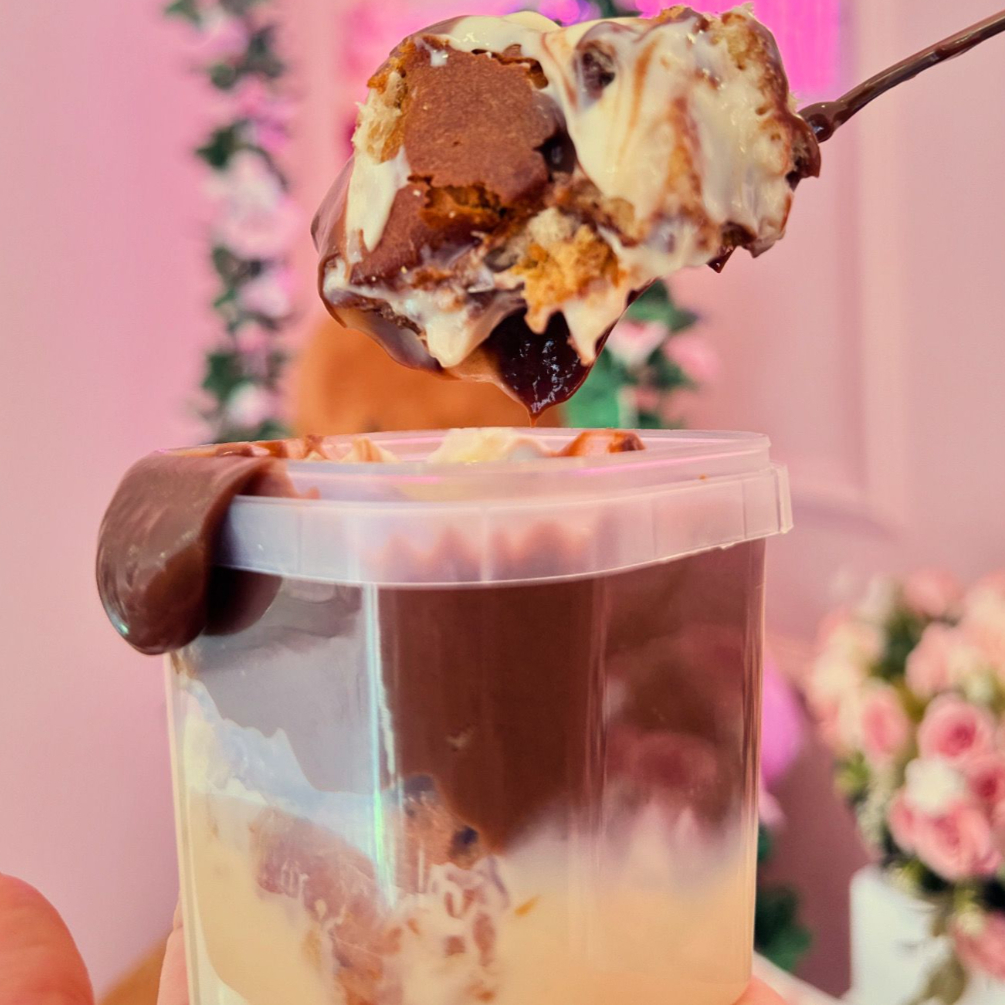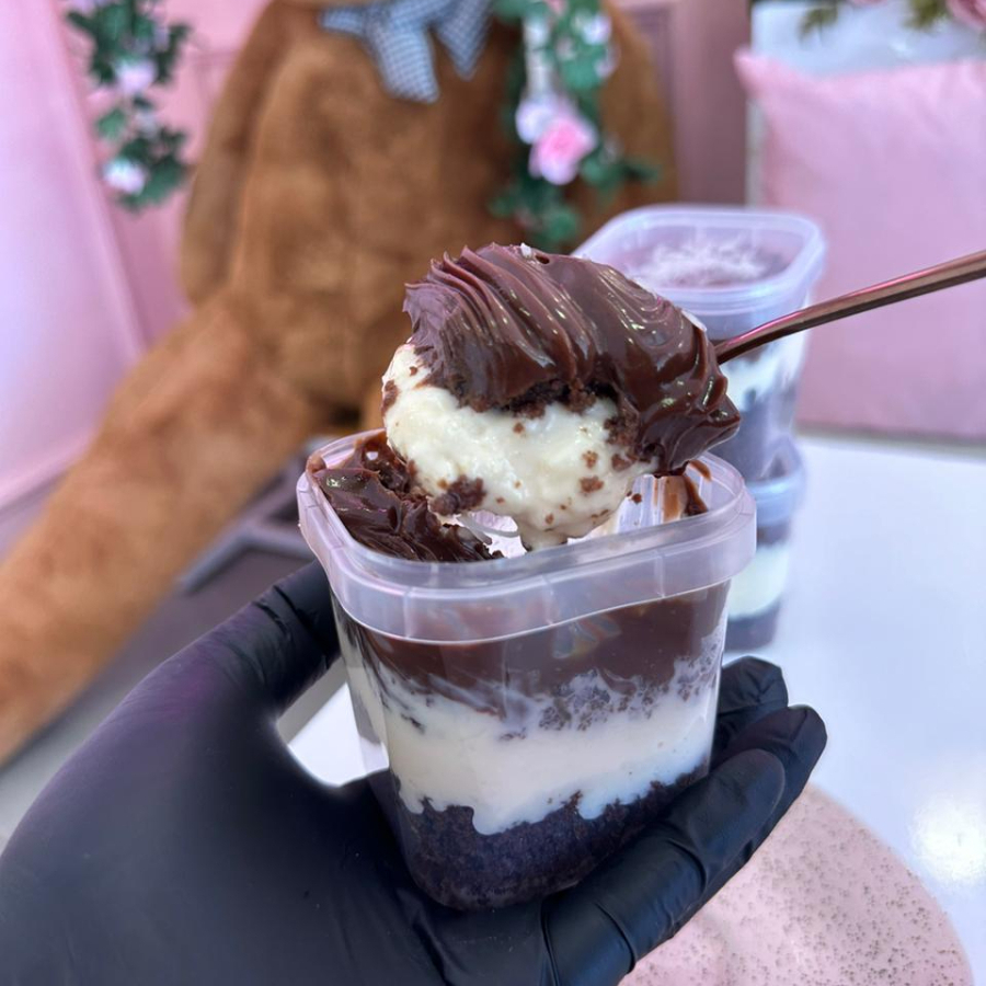 Creme de Ninho, brigadeiro cremoso e pedacinhos de brownie.