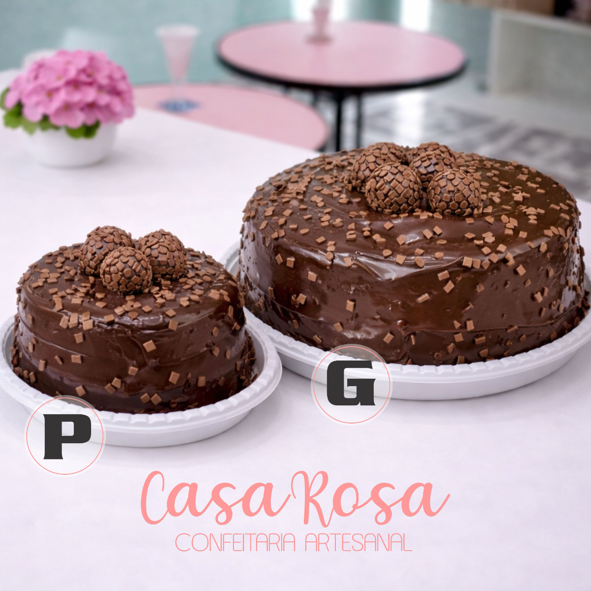 Massa fofinha feita com chocolate 50% coberta com nosso brigadeiro belga e chocolate granulado . (Serve aproximadamente 10 pessoas) (Peso aproximado 1kg).