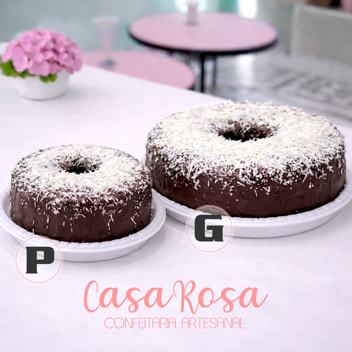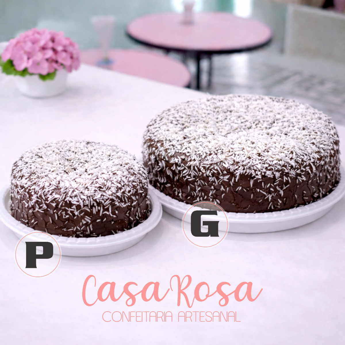Nossa massa fofinha de chocolate 50% cacau, coberta com brigadeiro cremoso, leite condensado e coco ralado. (Serve aproximadamente 10 pessoas) (Peso aproximado 1kg).
