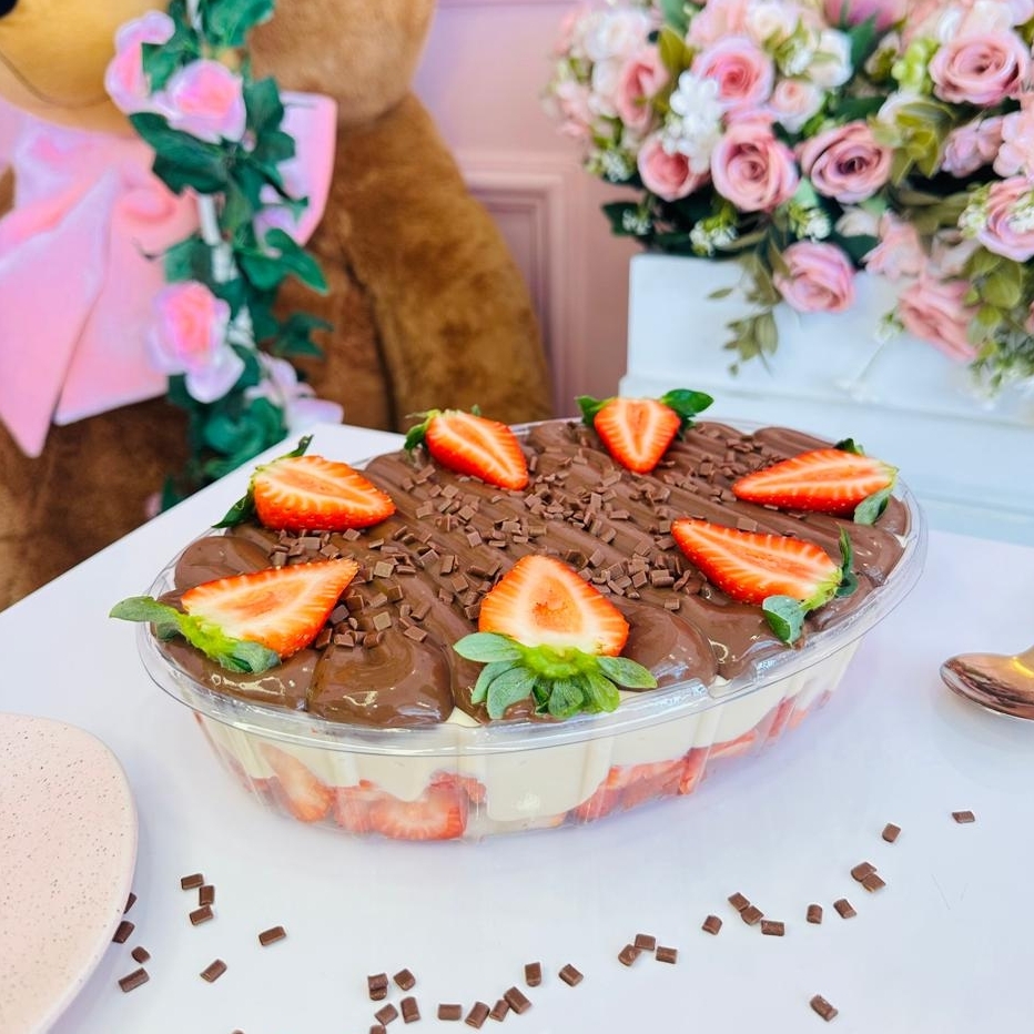 Sobremesa com creme de Ninho, brigadeiro cremoso 50% cacau, pedacinhos de brownie, morangos frescos picados e chantilly. Atenção: atente-se ao tamanho do produto, pois o mesmo não é vendido no peso e sim por tamanho. (Temos dois tamanhos embalagem de 750ml e 1.5 Litros).