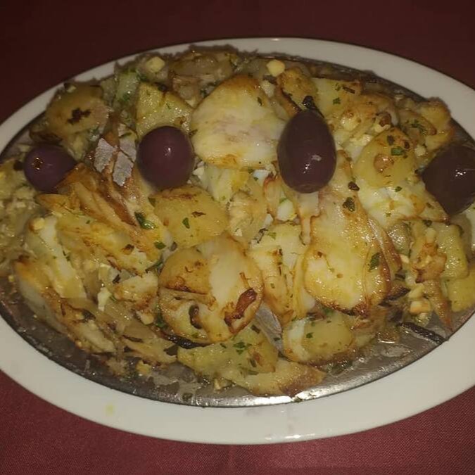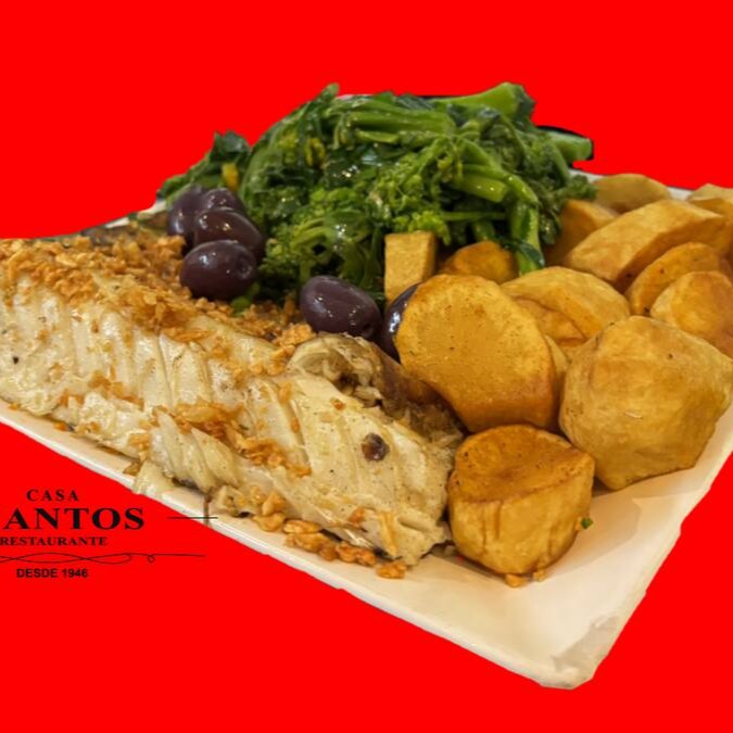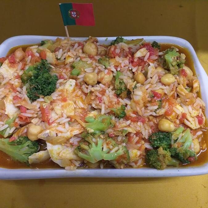 Outra especialidade da casa. Um prato muito suculento e leve. Preparado com lascas de bacalhau, brócolis e grão de bico. Tudo bem refogado no azeite extra virgem com tomate e cebola em pequenos pedaços.