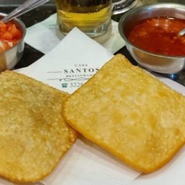 Recheado com bastante bacalhau refogado no azeite, cebola e salsinha.