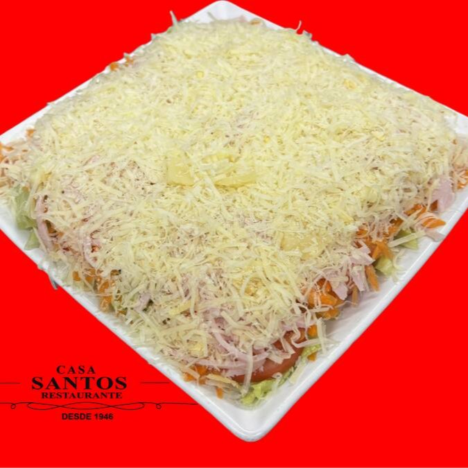 Agrião, Alface, Tomate, Palmito, Ervilha, Batata Cozida, Fatias de Muçarela, Fatias de Presunto ou Peito de Peru, Ovo Cozido e Cebola.