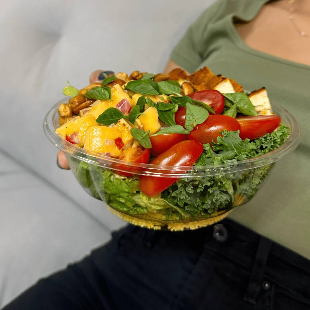 Monte a sua salada com as combinações que você mais ama escolhendo 2 bases + 5 complementos + 1 molho