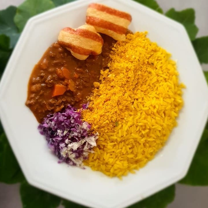 Delicioso picadinho, preparado com proteína texturizada de soja (Pts), cenoura, batata, cebola e tomate, tudo meticulosamente temperado com o exclusivo tempero da casa. É harmoniosamente acompanhado de um suave e aromático arroz enriquecido com cúrcuma e uma salada colorida. Uma opção perfeita para um almoço nutritivo e saboroso!