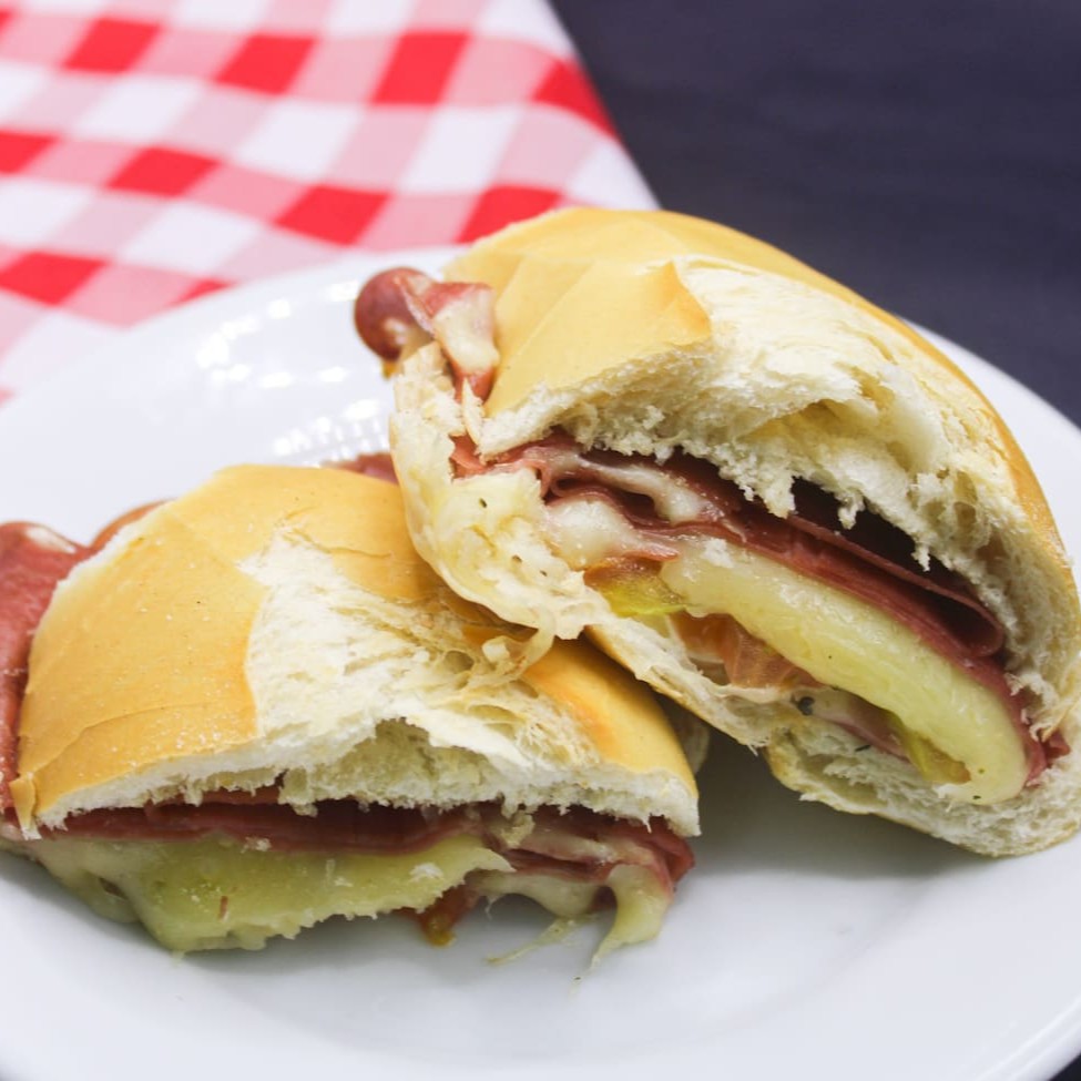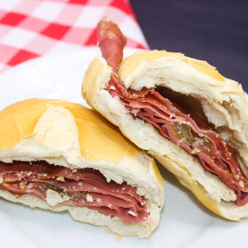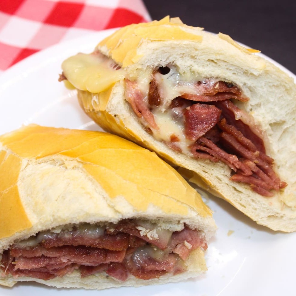 Pão francês, Mortadela, Mussarela, Tomate e Orégano
