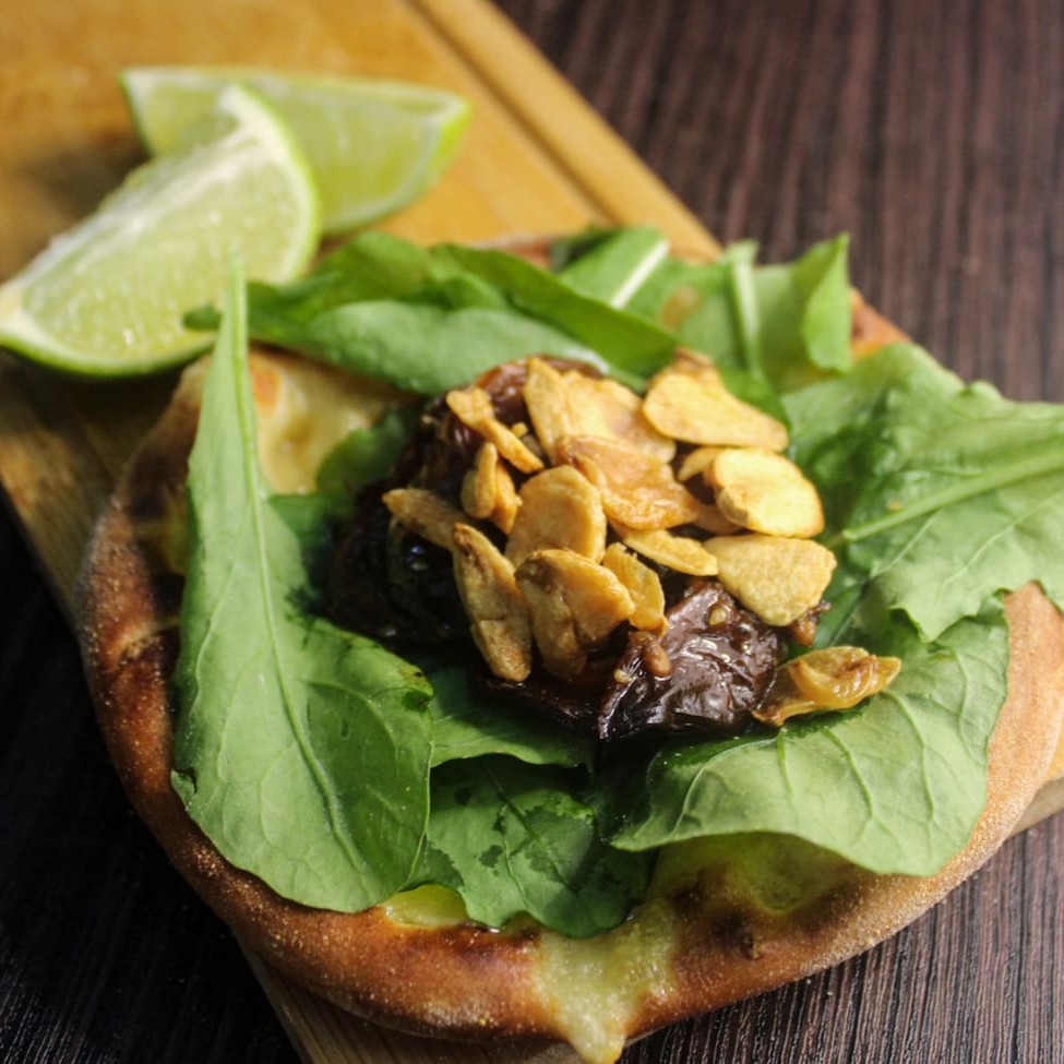 Mussarela, Rucula, Tomate Seco E Alho Frito