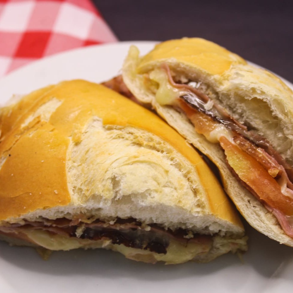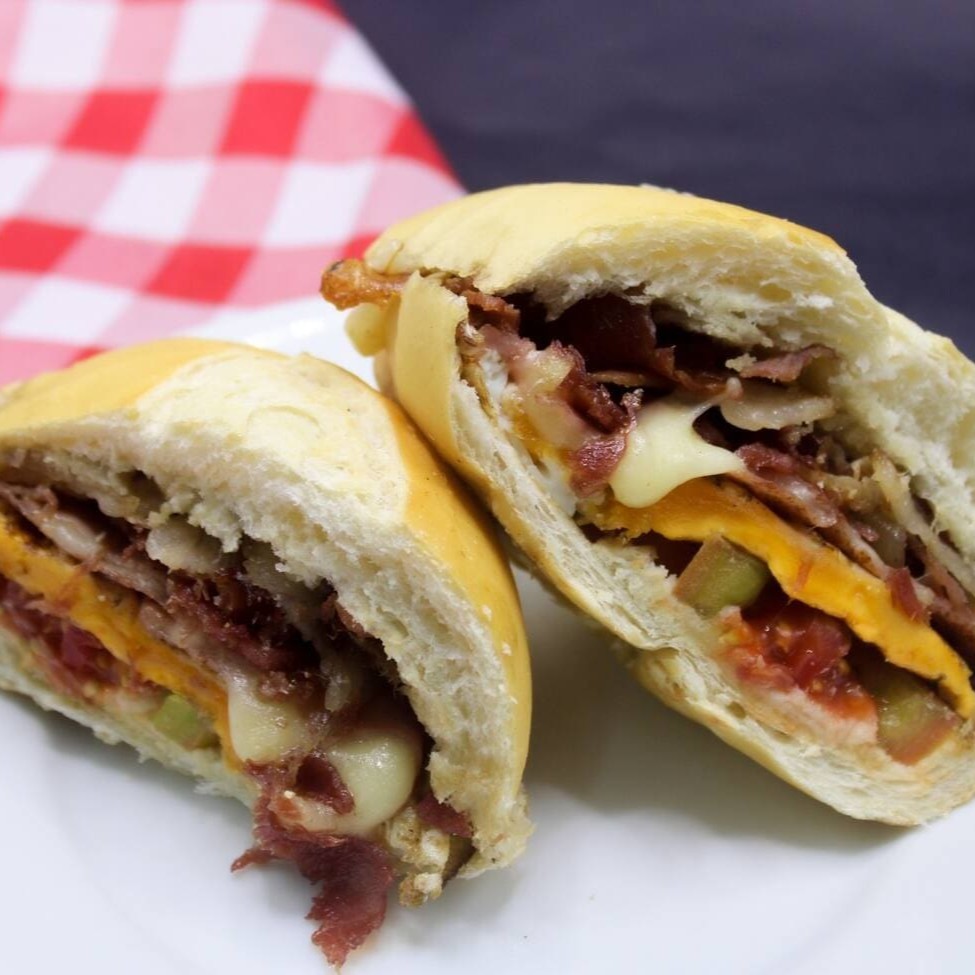Pão Francês, Presunto, Tomate, Mussarela, Ovos e Bacon