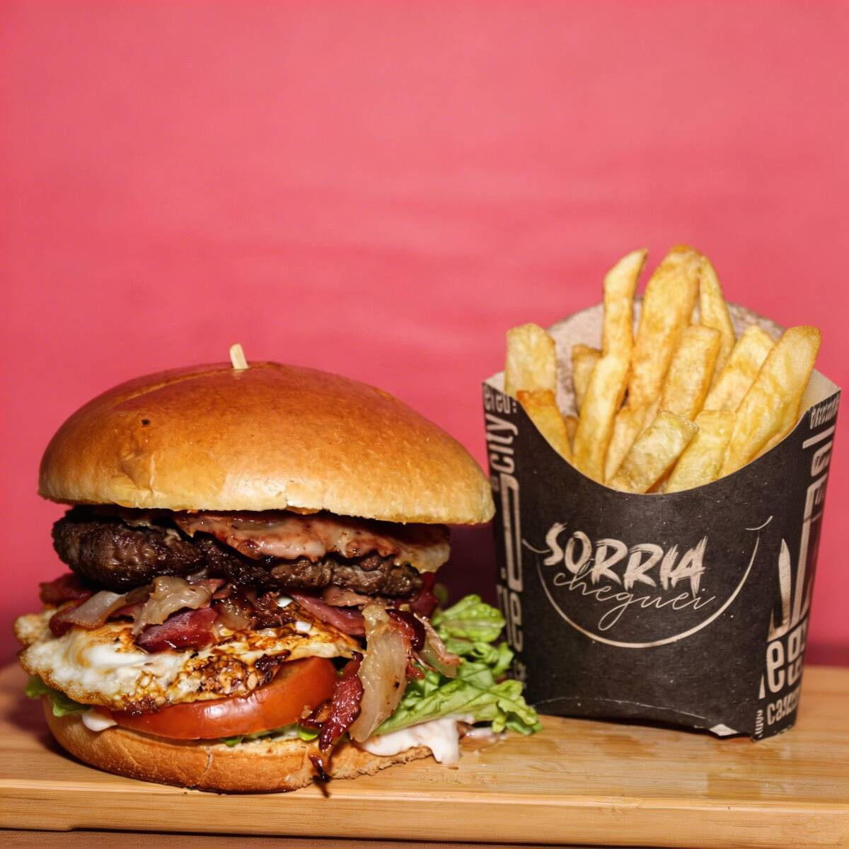 Pão, maionese, alface, tomate, presunto, frango, bacon, ovos, queijo, cheddar e Catupiry