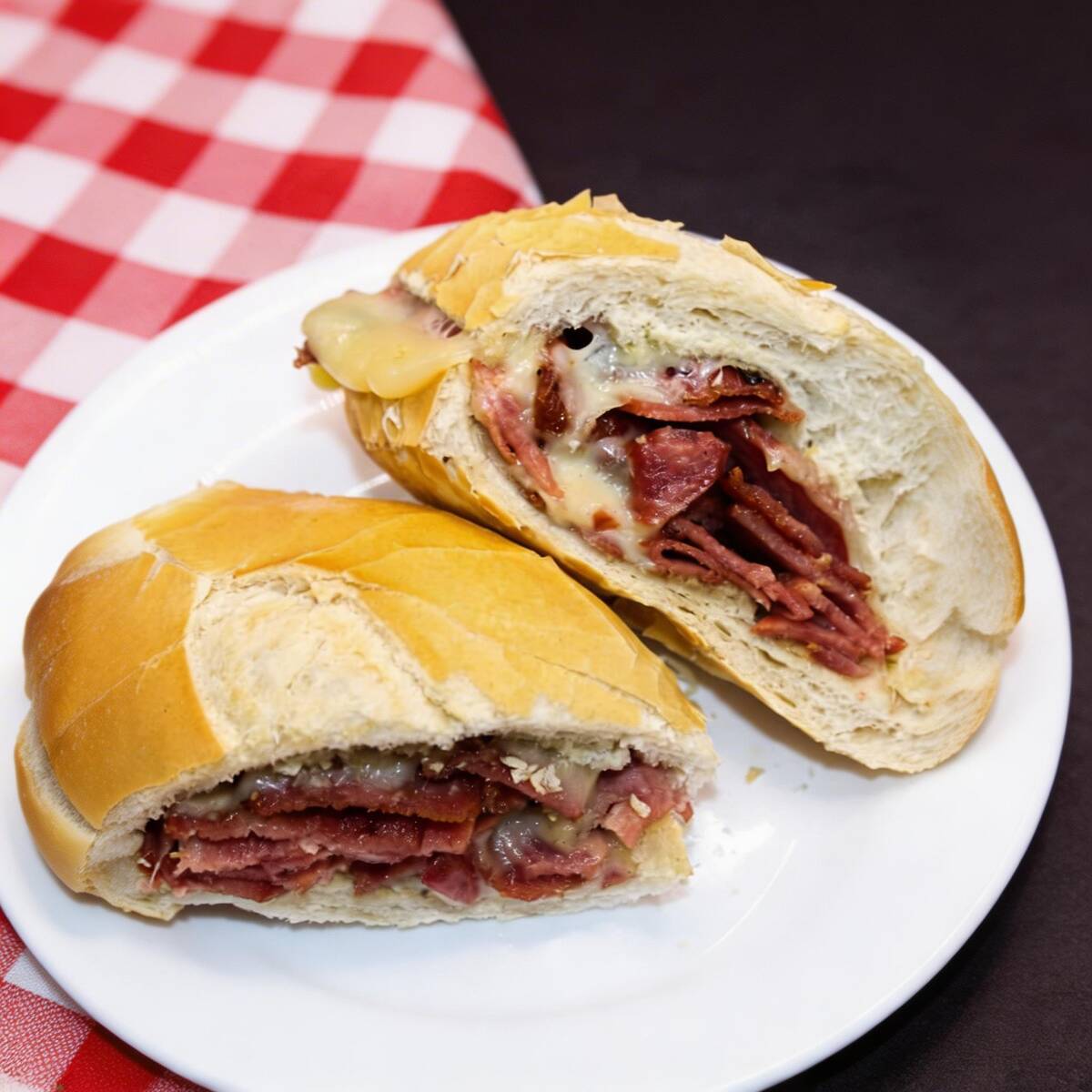 Pão francês, salame, mussarela derretida