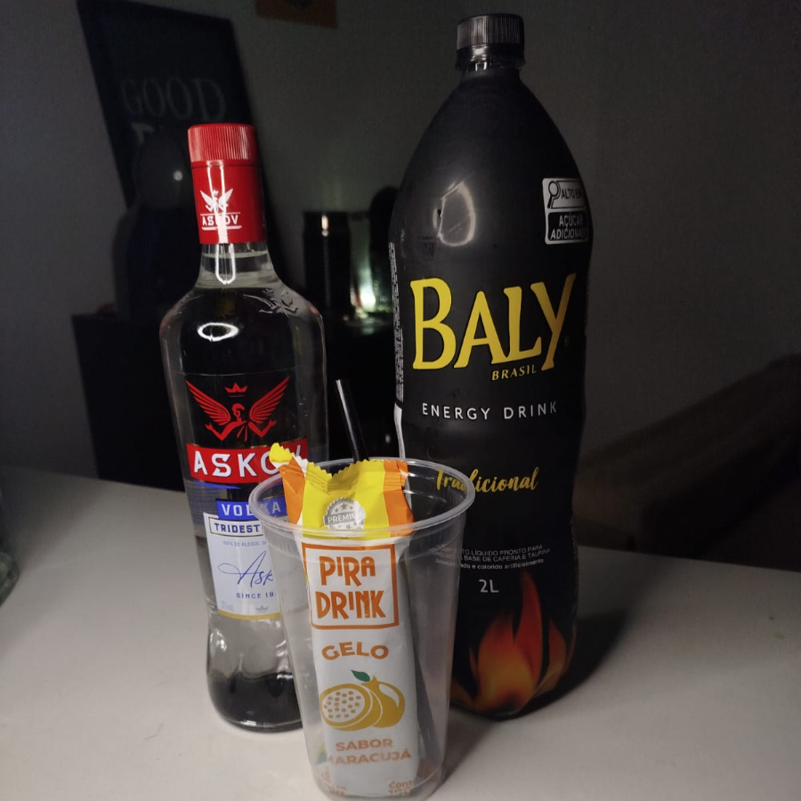 Askov (DOSE!!!) com gelo de maracujá e energético tradicional EM UM COPO DE 700ML. >>Não é possível alterar nenhum insumo do item, não insista<<