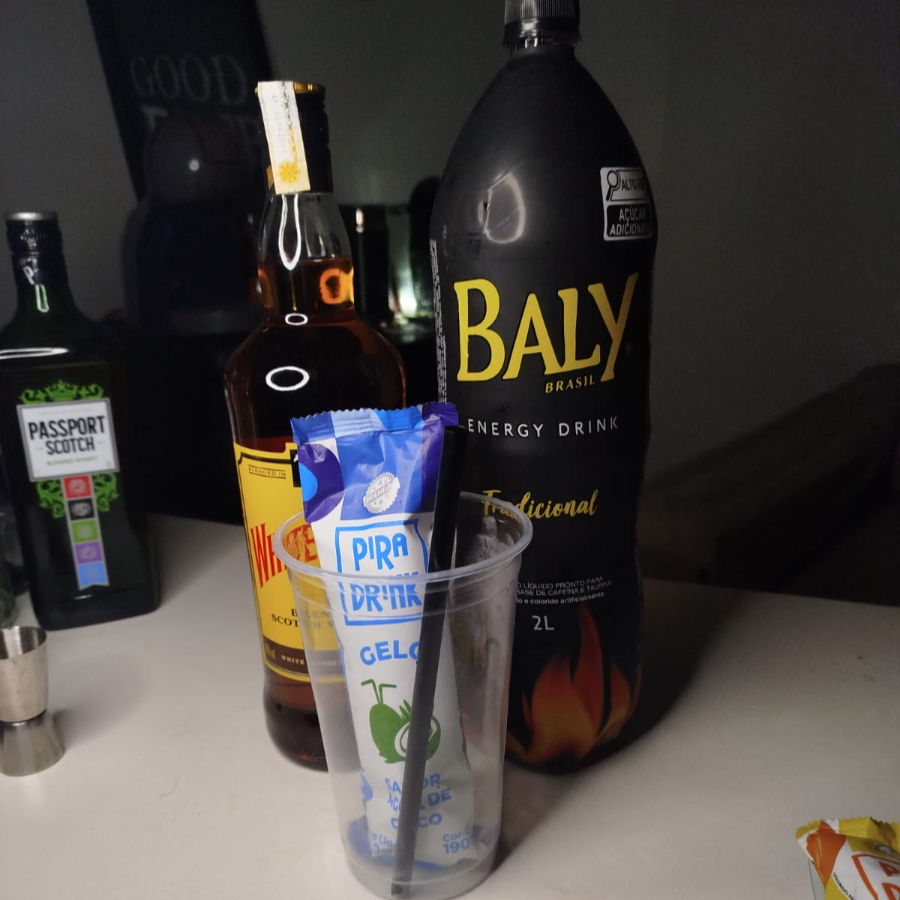 White Horse (DOSE!!!) com gelo de coco e energético tradicional EM UM COPO DE 700ML. >>Não é possível alterar nenhum insumo do item, não insista<<