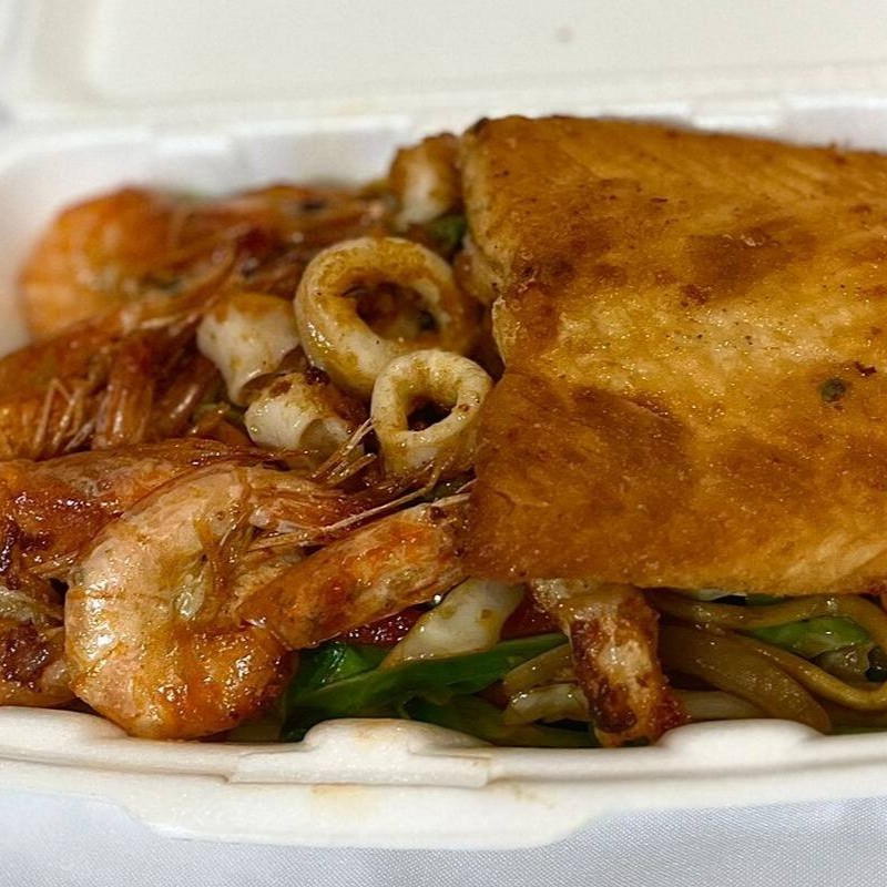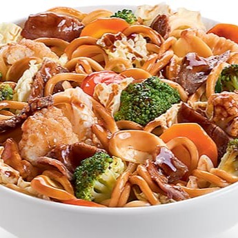 Macarrão, salmão, lula, camarão e legumes desfiados ao molho shoyu.