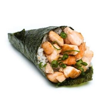 Nori, gohan, salmão em cubo, cebolinha e cream cheese.