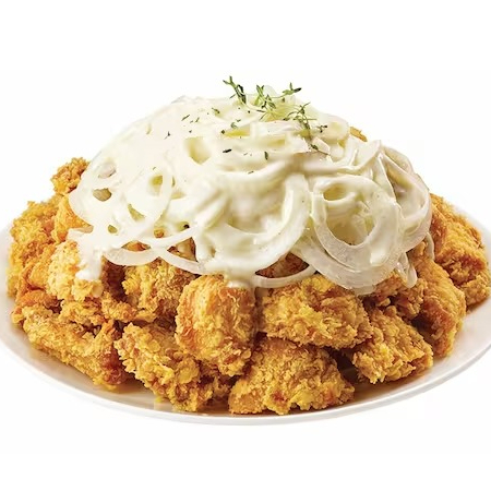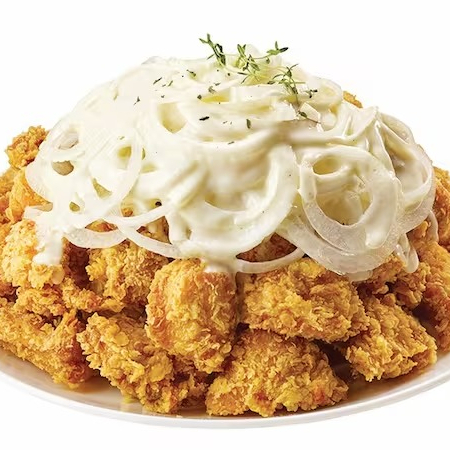 Novo sabor! Chicken metade creamy onion(cebola cortado bem finhinho com molho a base de cream cheese e limão). Acompanha 2 molhos da casa (alho, barbecue, mostarda e mel ou pimenta agri-doce ). Serve 1 a 2 pessoas.