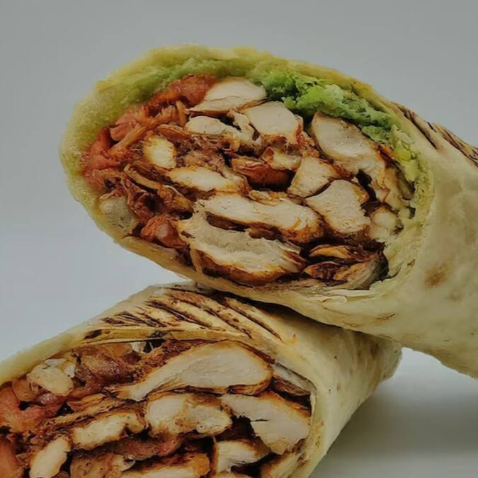 Frango temperado - maionese verde - alface - tomate - Picles - batata frita - enrolado no pão sírio