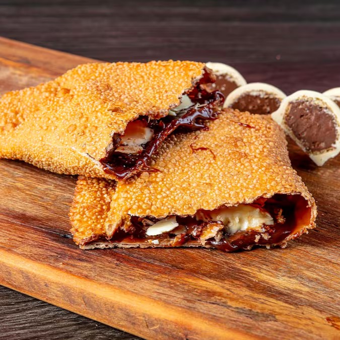 Recheado com Nutella cremoso e pedaços de morangos frescos, oferecendo uma mistura perfeita de sabor doce e frutado. Com uma massa feita com cacau puro, super sequinha e crocante, mantendo sua textura irresistível – mesmo no delivery!