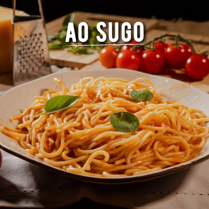 Aqui, o chef é você! Base de Macarrão ao Sugo, escolha seus ingredientes favoritos e monte seu espaguete do seu jeito, combinando proteínas e acompanhamentos com liberdade total. Preparamos tudo com ingredientes de primeira qualidade, frescos e selecionados, para garantir sabor e experiência em cada garfada.