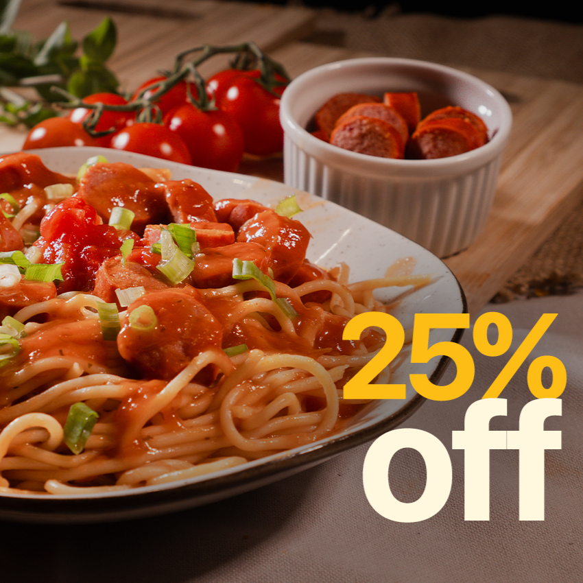 Massa Espaguete grano duro, com molho Sugo encorpado com Linguiça Calabresa de primeira qualidade preparado com o jeitinho do Chefinhos. Pode acreditar cabe muito na embalagem!