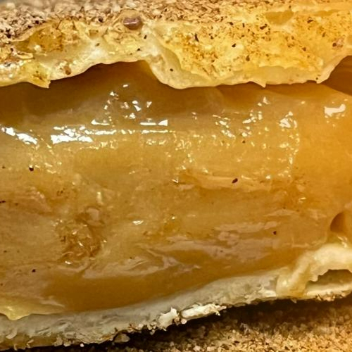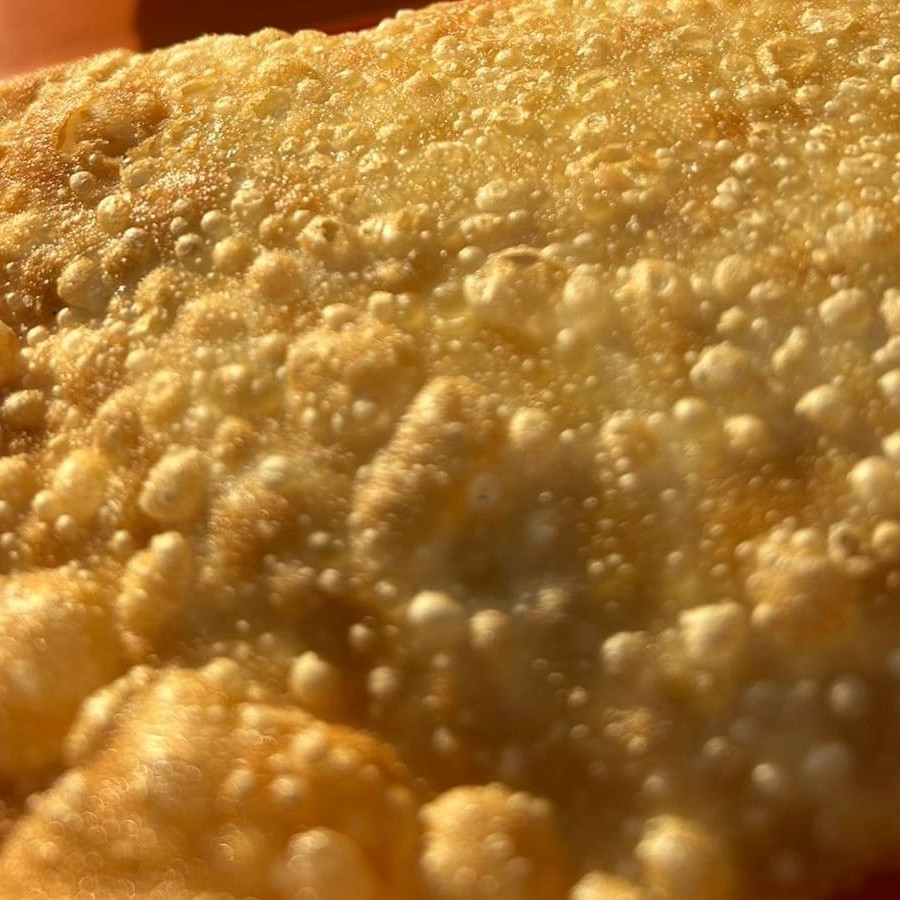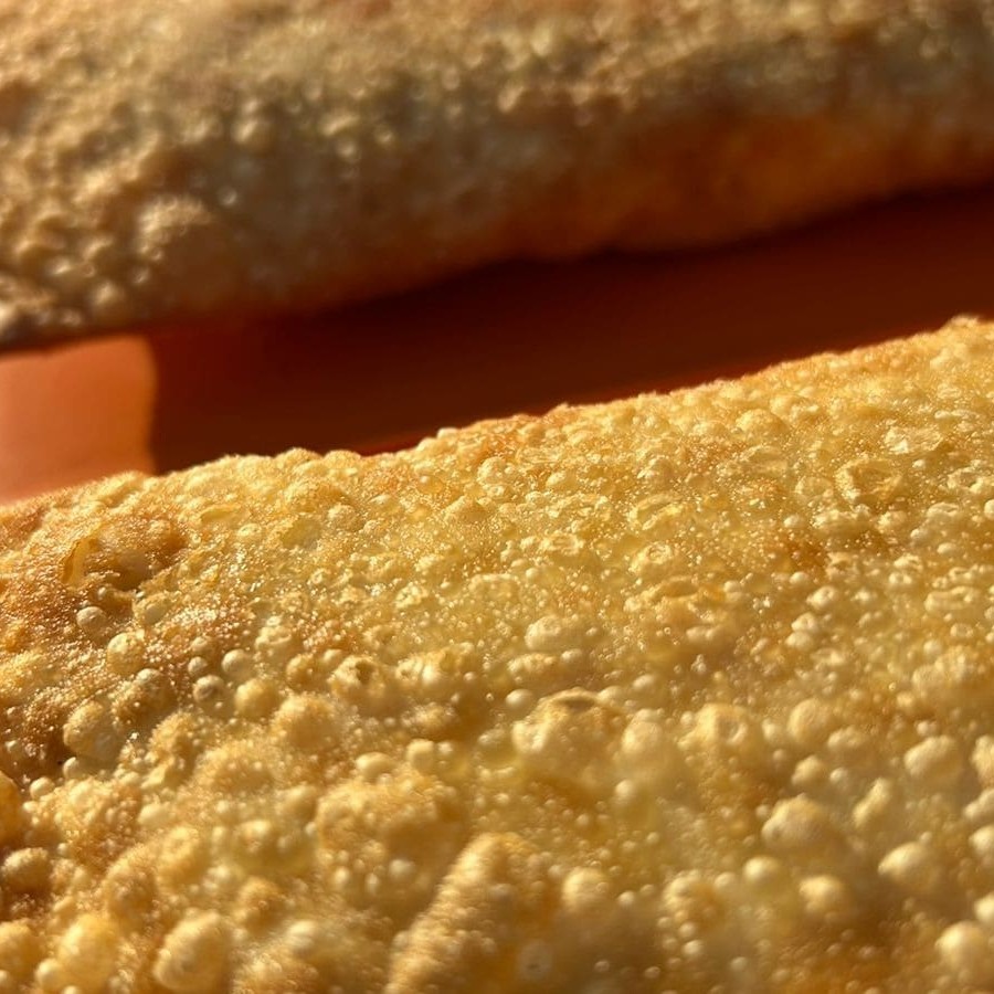 Pastel recheado de doce de leite, e após frito, polvilhado de açúcar e canela.