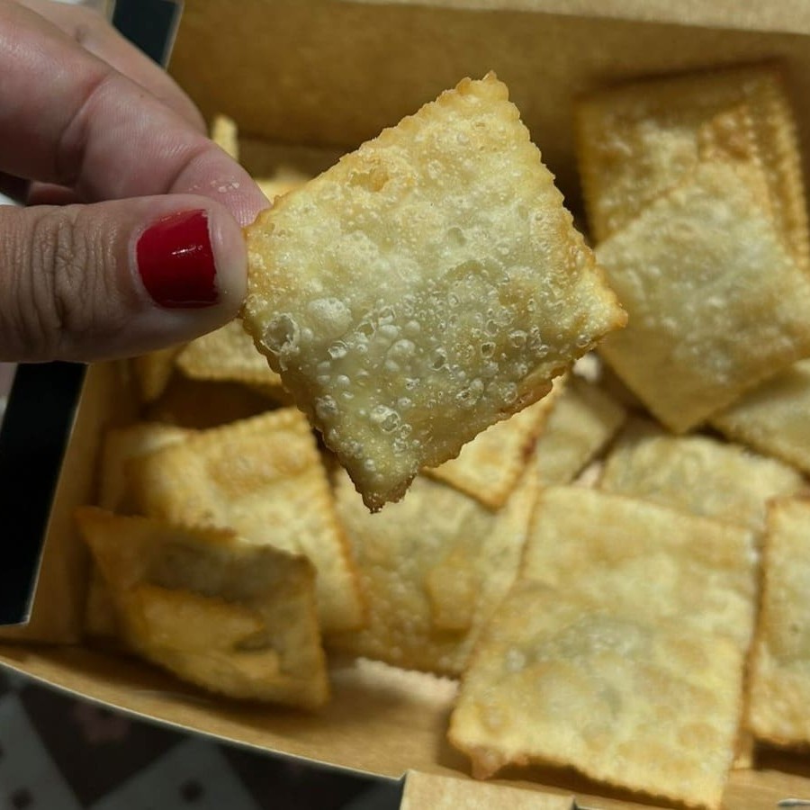 Sabe aquele mini pastelinho de festa infantil? Agora temos eles a pronta entrega. Você pode comer, no lugar da pipoca, para assistir sua série favorita; ou comer essa porçãozinha com uma cervejinha, e papear com os amigos.