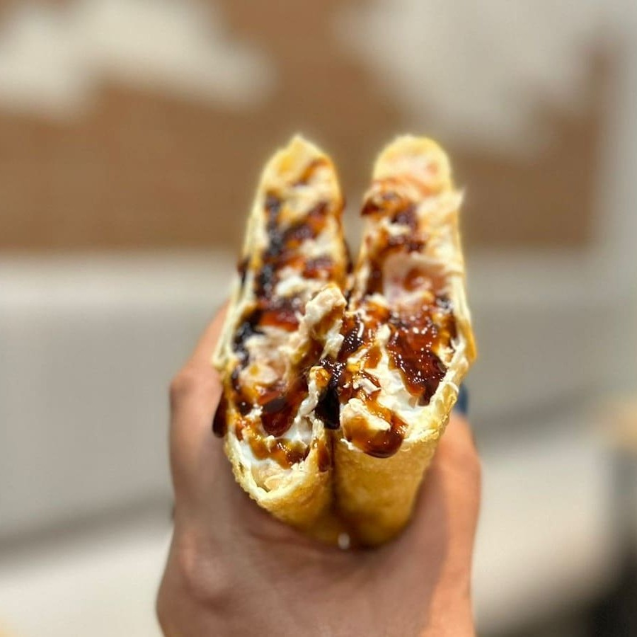 Pastel de hotdog, consiste em: salsicha Sadia ao molho, queijo muçarela, requeijão, cheddar, bacon em cubos, batata palha, ketchup, mostarda e maionese. Tudo isso dentro de um pastel.