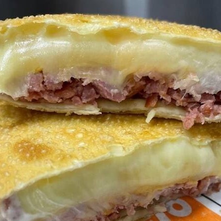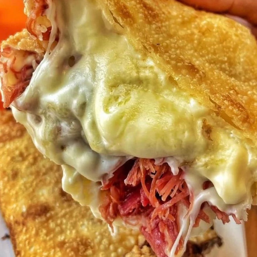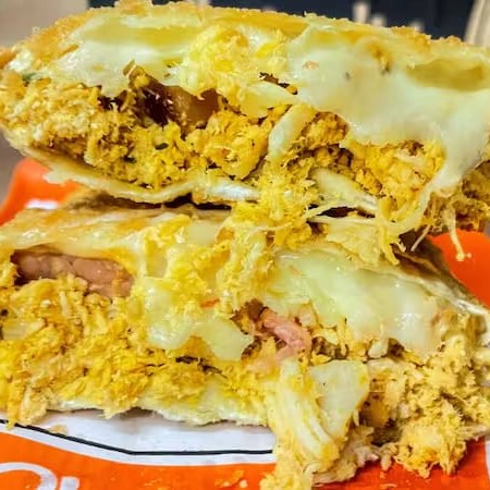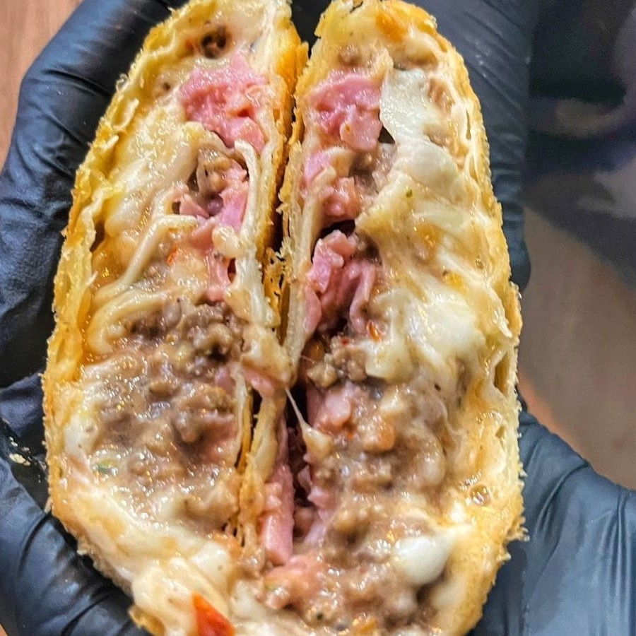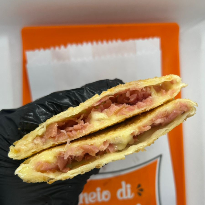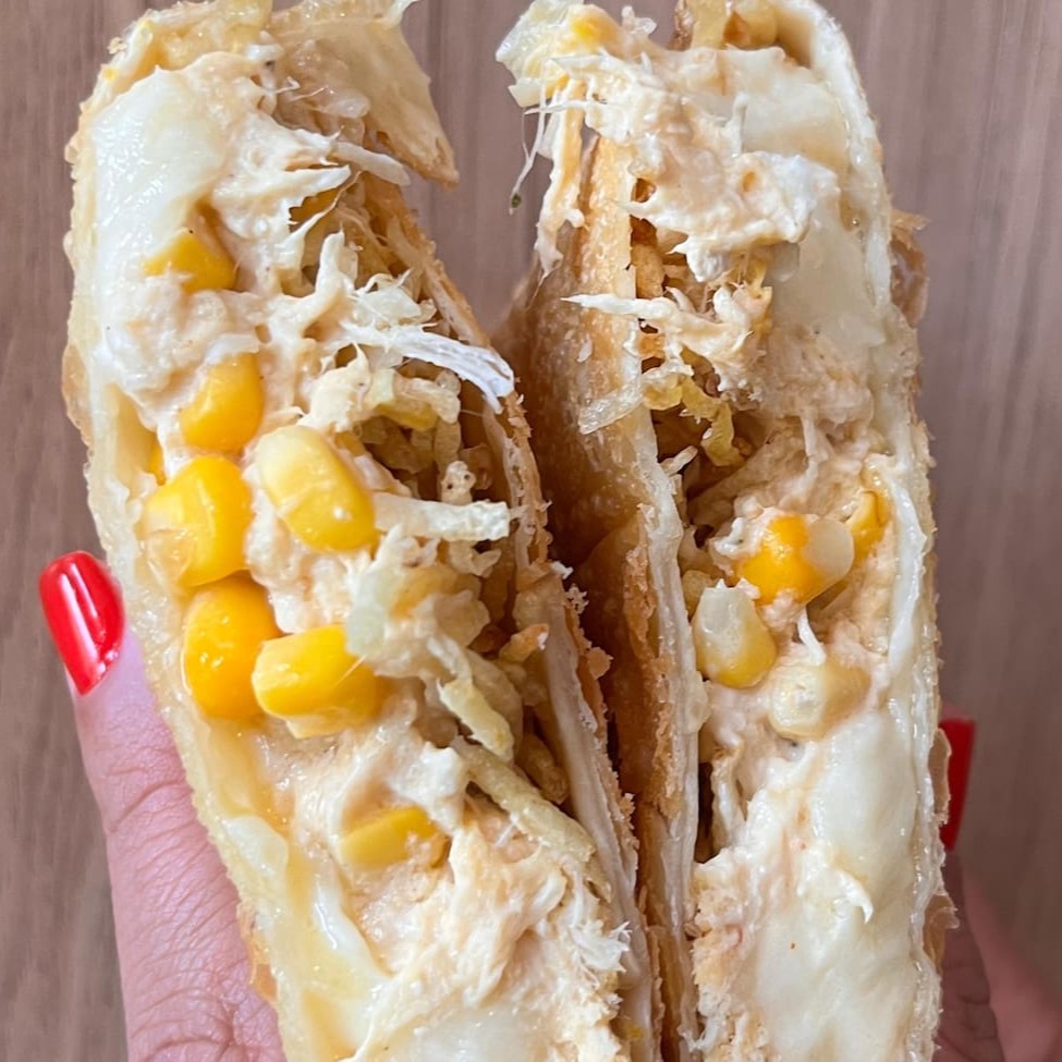 Frango desfiado com requeijão cremoso, carne moída, calabresa, cheddar e queijo muçarela... Tudo isso junto, misturado e muito bem recheado! Uma combinação ousada, exagerada e feita pra quem não escolhe um sabor só — quer todos de uma vez. Tudo isso dentro de uma massa leve e crocante, do tamanho da sua fome. O pastel mais bagunçado (e amado) do cardápio. Aqui o recheio é levado a sério! São 12