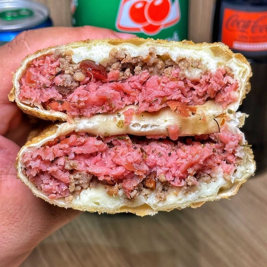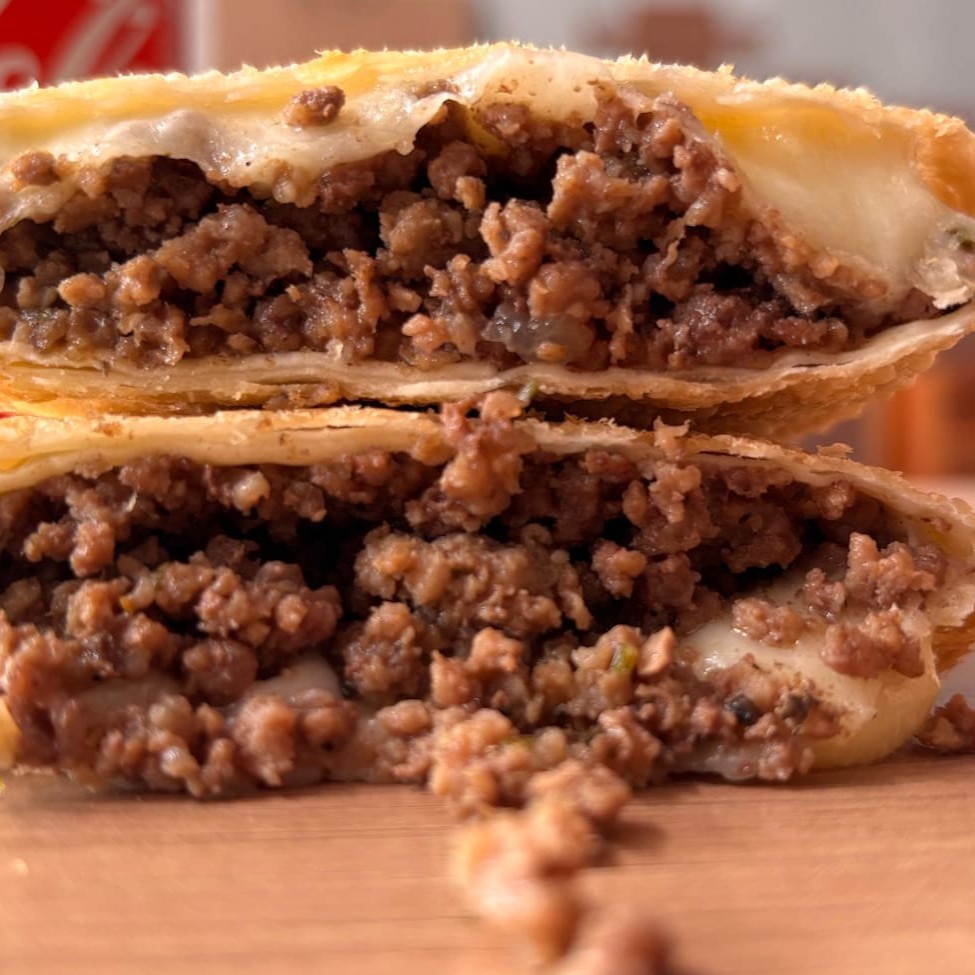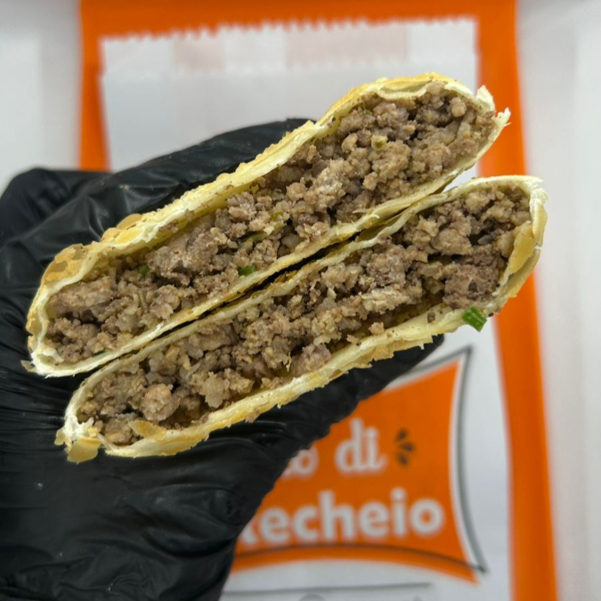 Carne moída suculenta, combinada com mussarela derretida. Envolto em massa leve e crocante. Uma explosão de sabor a cada mordida, preparado na hora com carinho! Aqui o recheio é levado a sério! São 22x12cm e aprox.300g de um sabor incomparável! Lanche da tarde Lanche Refeição