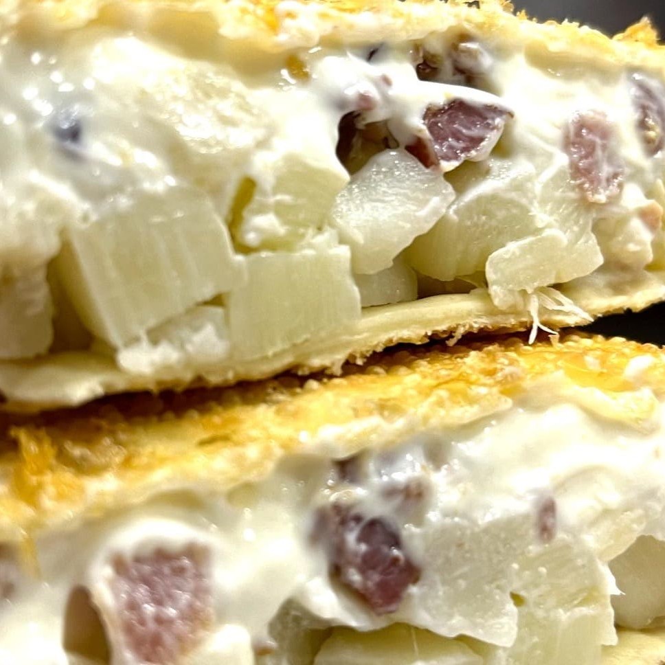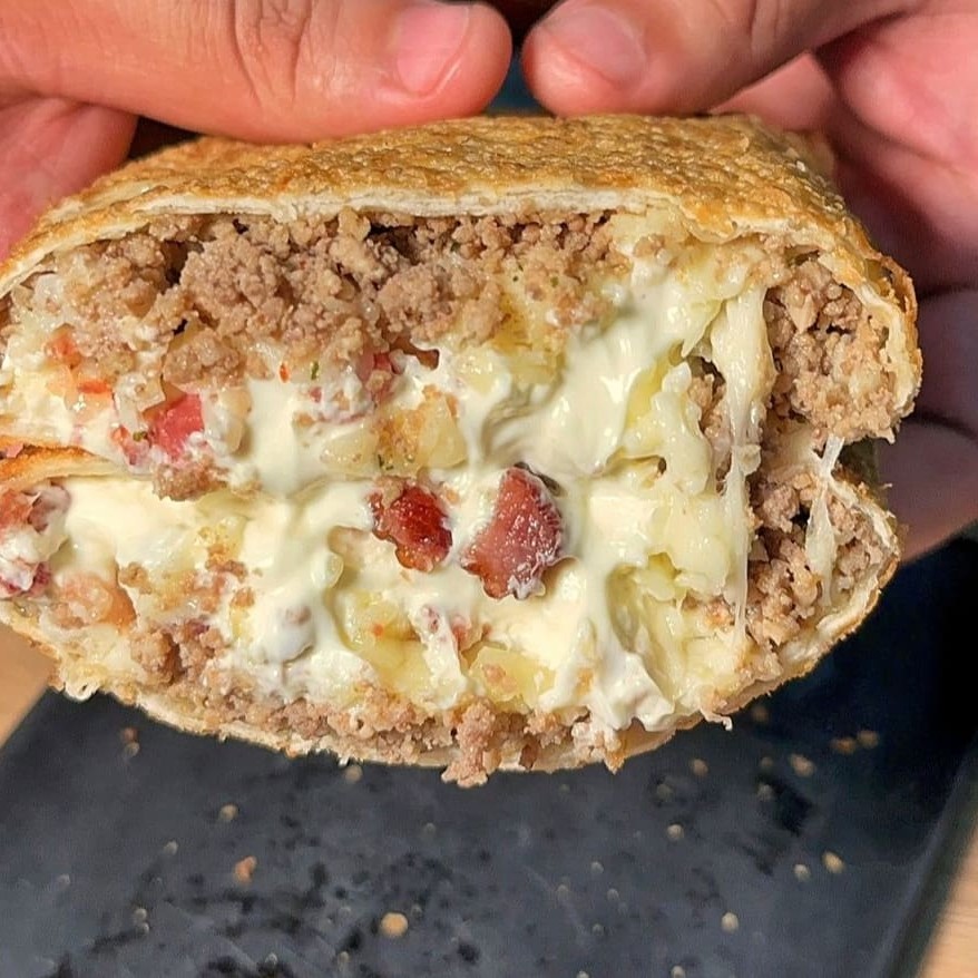 Carne moída 100% bovina, bacon crocante defumado, queijo muçarela e uma generosa camada de cream cheese cremoso. São 22x12cm e 350g apx. De muita suculência, crocância e cremosidade numa explosão de sabor única. Aqui o recheio é levado a sério! Perfeito para: Lanches da tarde Almoço Lanches Refeição Jantar